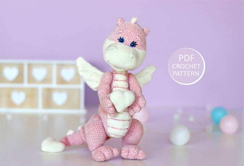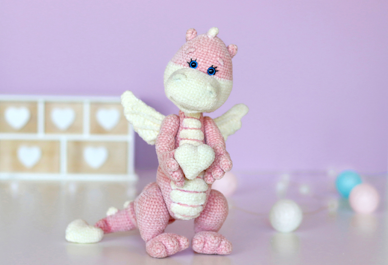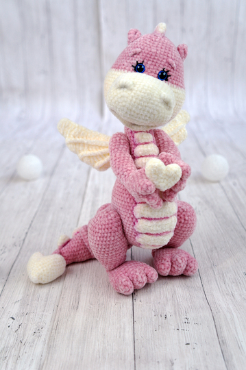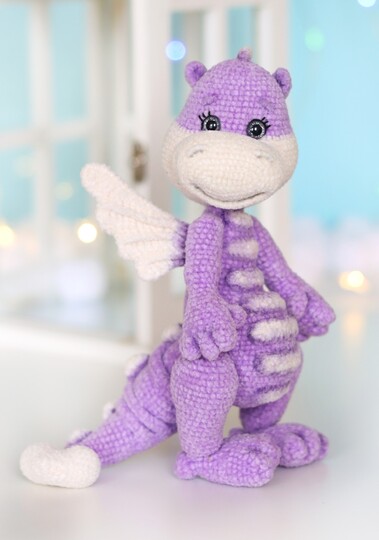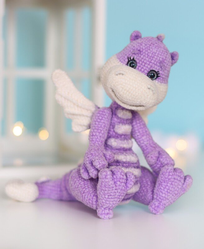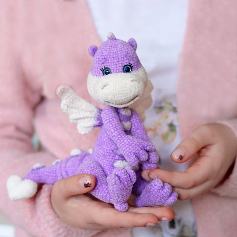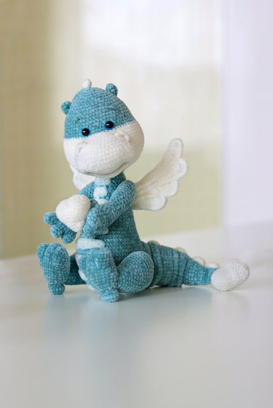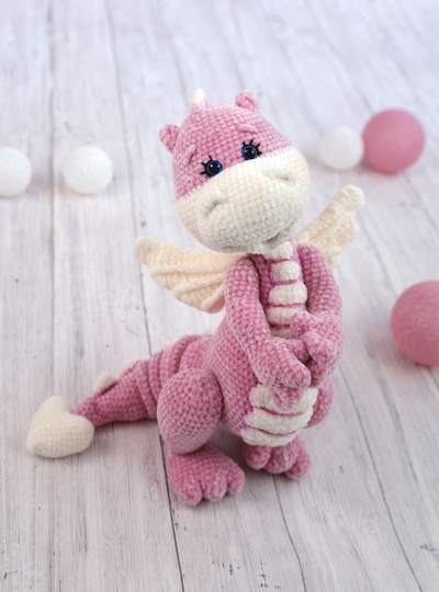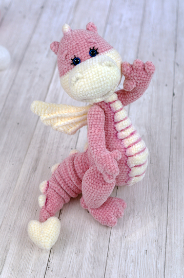 The little dragon is crocheted from chenille wool and very soft and cuddly.