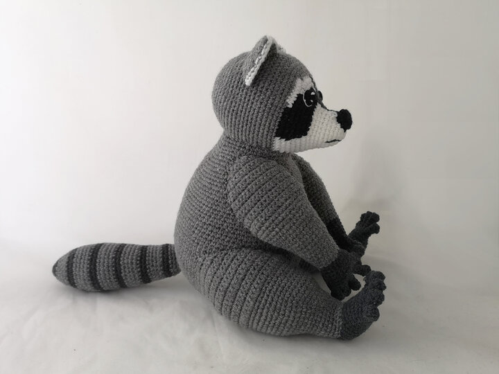 Der Waschbär ist realistisch gestaltet und beinahe Lebensgroß.