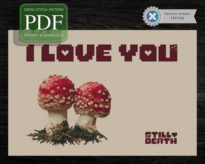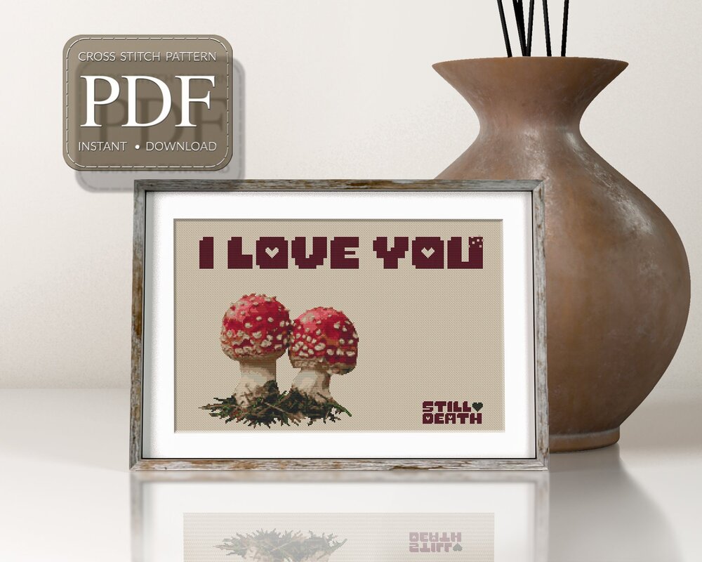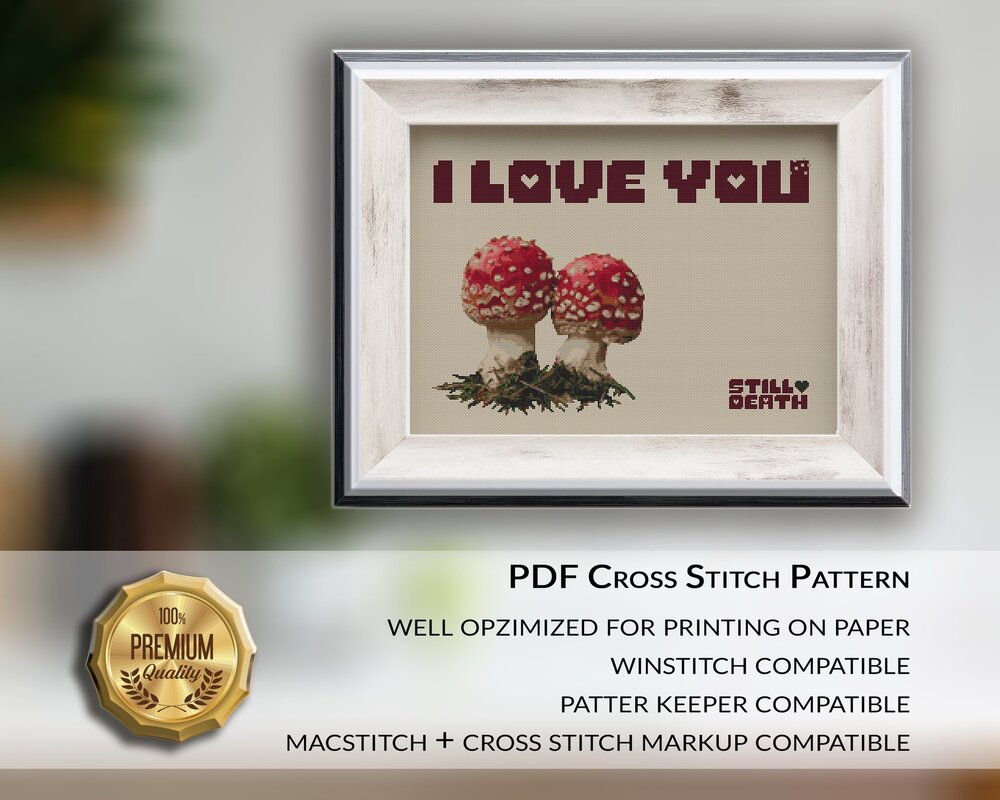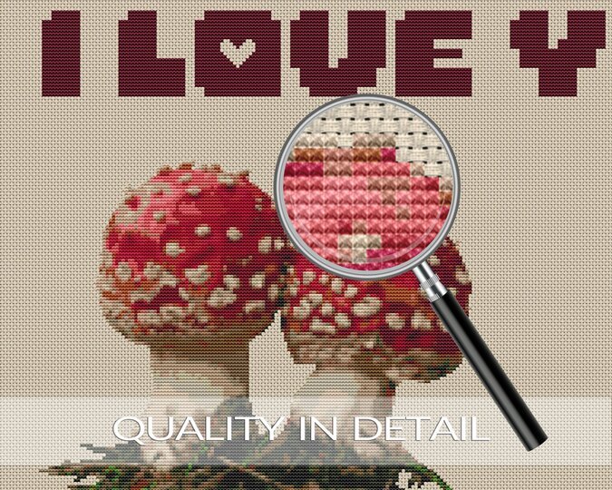 Two toadstools - as you find them in the fairy tale forest. This cross stitch pattern is especially suitable for lovers, but can also be given as a gift quite neutral and without a saying.