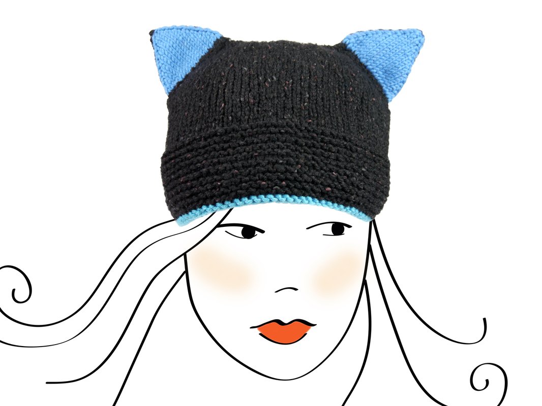 Sophisticated cat ladies will love the Cool Cat Hat. All black with statement ears, it jazzes up your black winter wardrobe with a not-so-serious wink. Match the ears with the colour of your favourite scarf or make them black as well – that‘ll go fine even with a business dress! The hat has an interesting construction with integrated ears. It is worked top down for better size alterations. In this pattern you‘ll find three different sizes – once you understand the system, you will easily figure out other sizes as well.