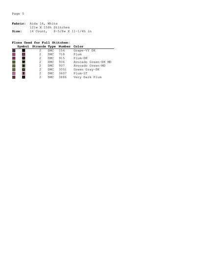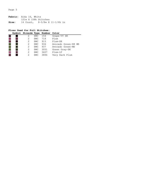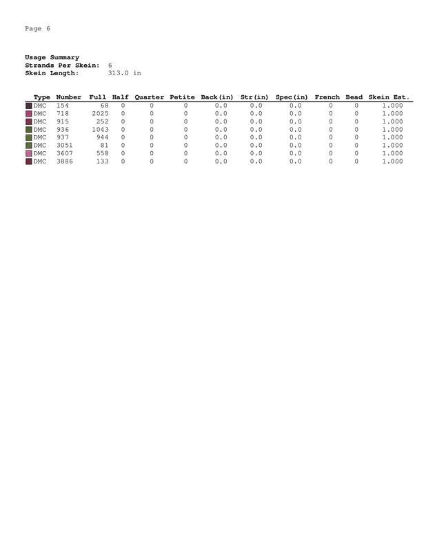 A Symbol Key page in DMC floss code