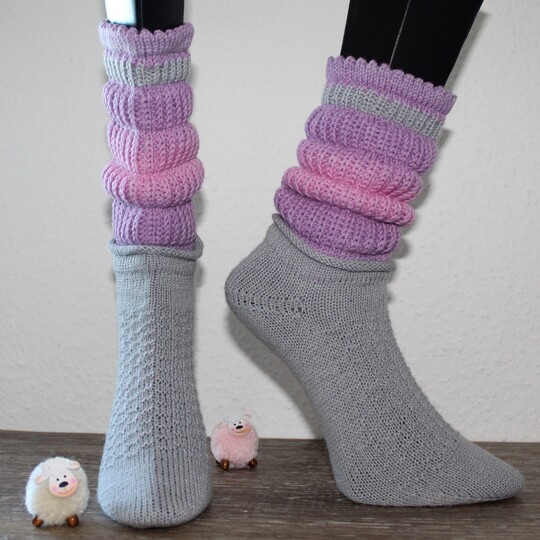 Der Schaft ist gestrickt aus 6fädigem Strumpfgarn. Durch das Muster ist er nicht nur schön warm, sondern lässt sich auch prima shoppen.