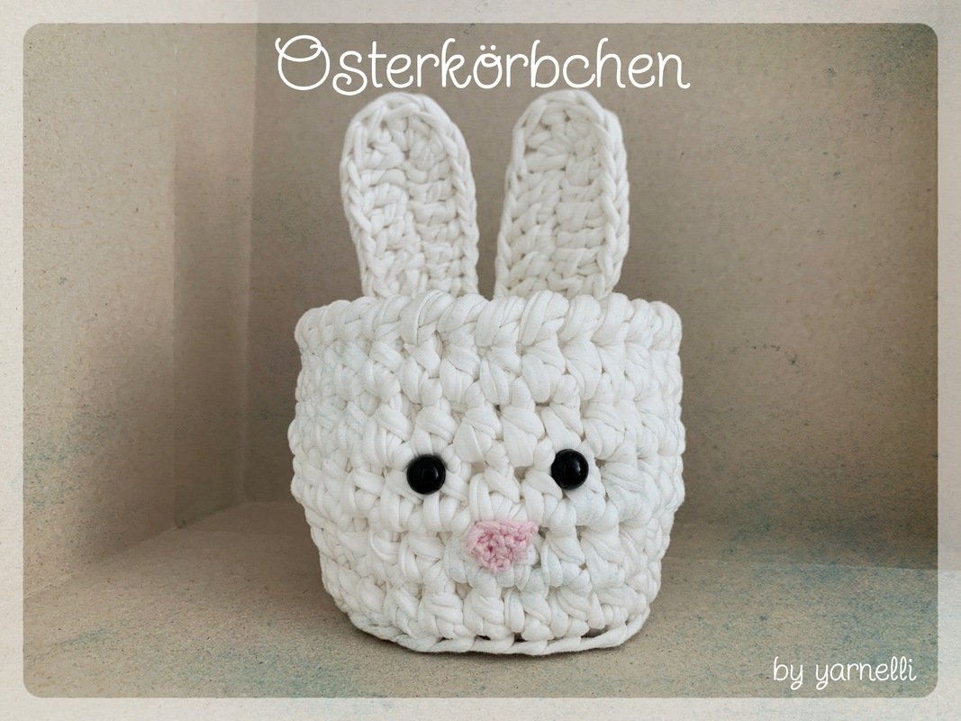 Das fertige Körbchen wird ca. 18 cm hoch (inklusive Ohren) und 13 cm breit.
