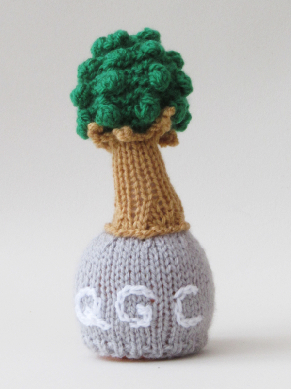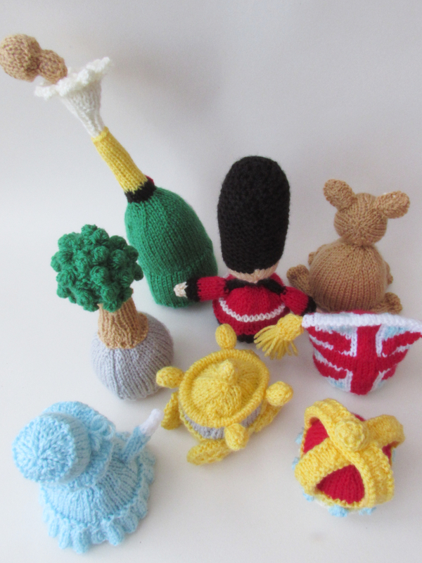 Some of the chocolate orange cosies are easier to make then others. The Union Jack and Champaign bottle label is intarsia worked from a chart for example. There are bobbles on the tree and crown.