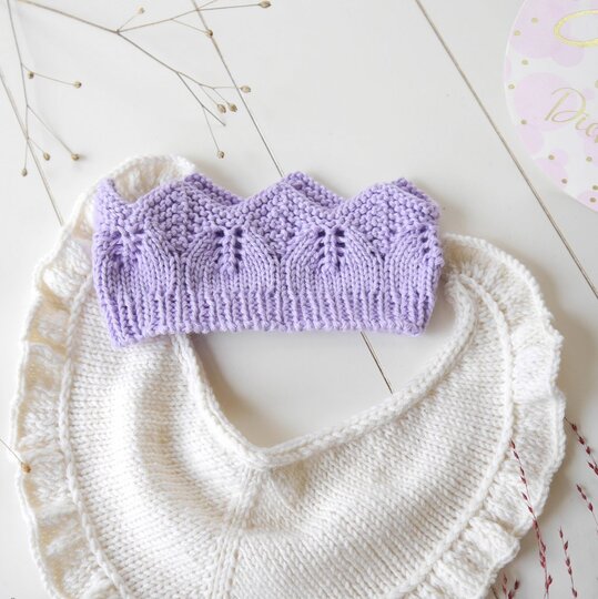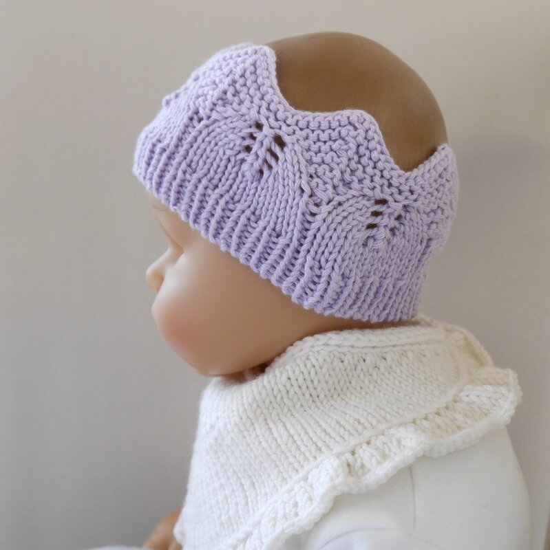 The coronet headband can be knitted either with a short circular or with a set of 4 double-pointed needles. The form of the crown is created by increases and decreases.