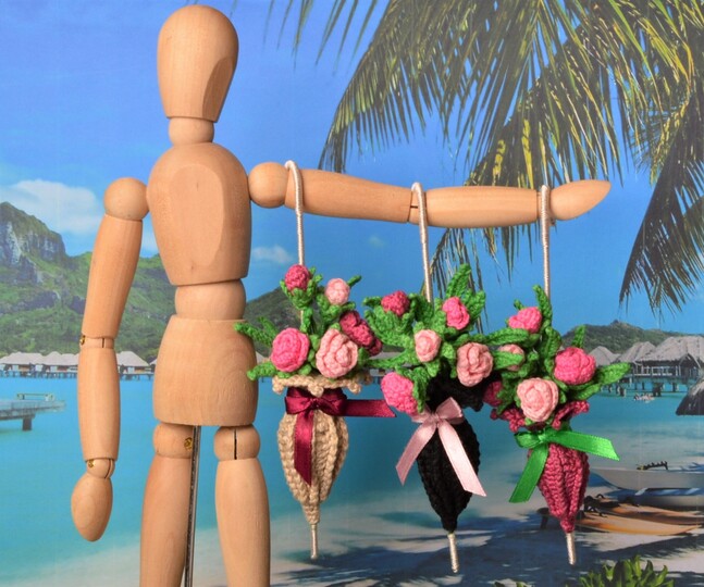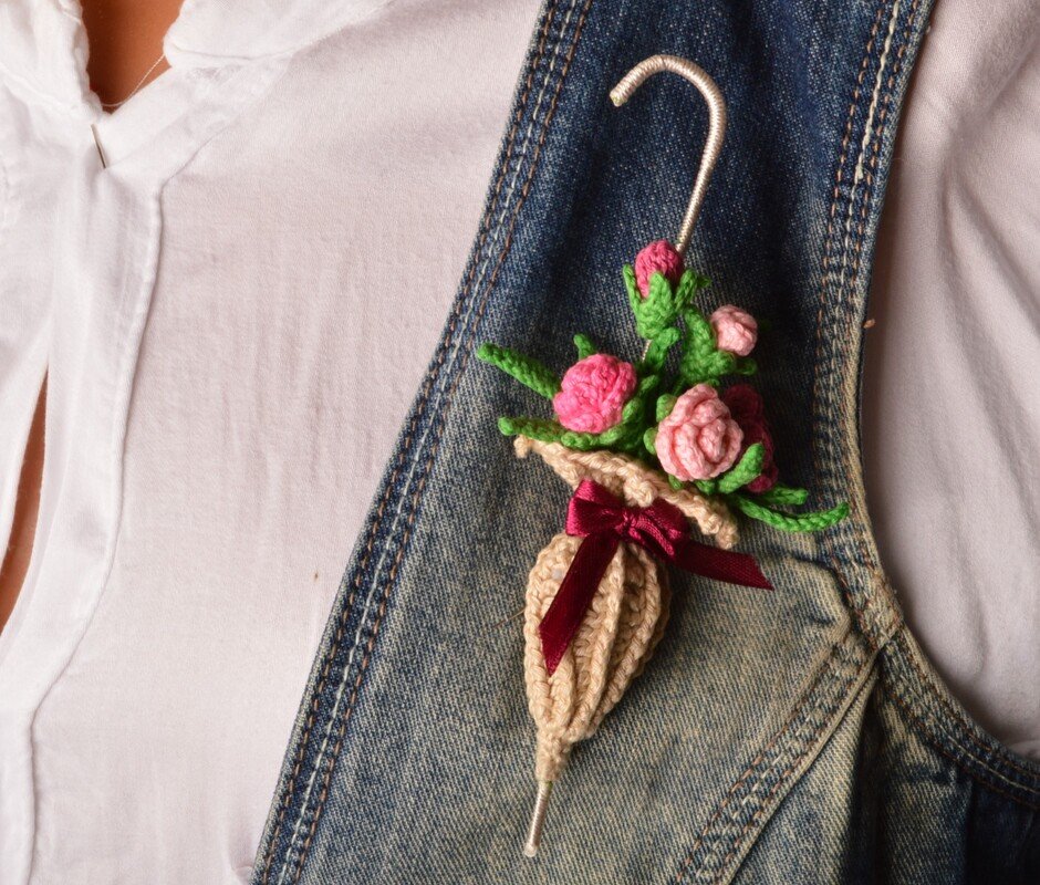 "Corsage - Umbrella" is a vivid and original souvenir. It can be a brooch, an amusing bagatelle on a dressing table, or just a bright spot on the wall.