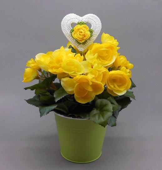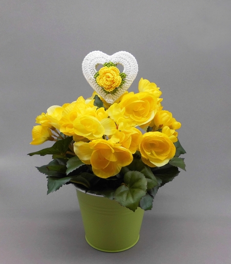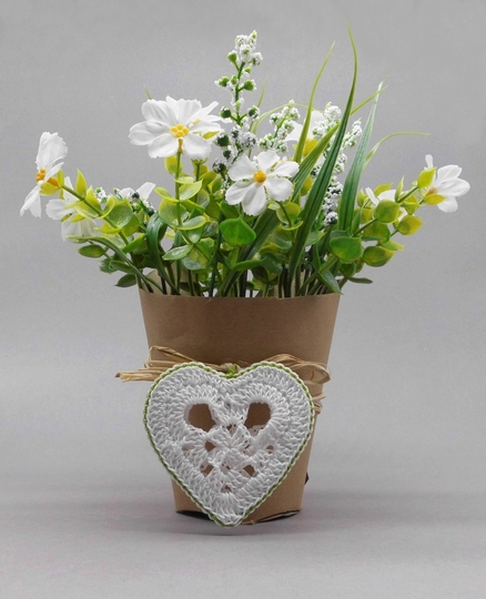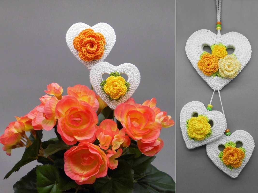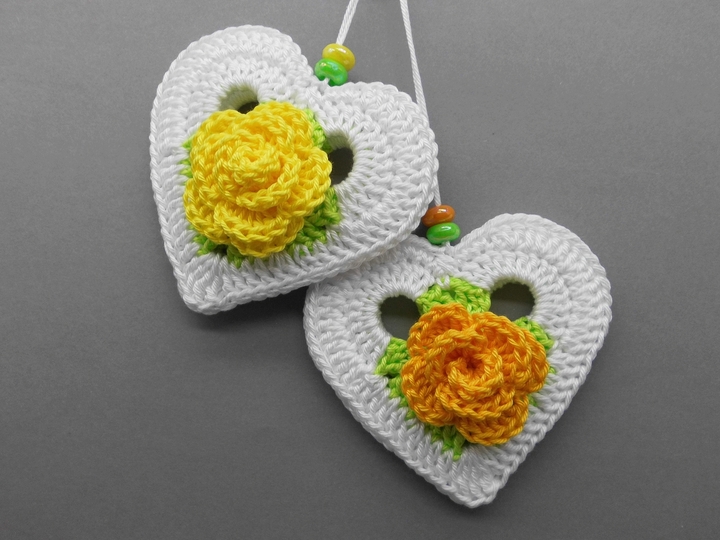 In addition to the written crochet explanation, the PDF instructions also include the crochet charts for the heart and the flower and very many detailed and explained step-by-step photos, so you can easily recreate this 4-in-1 decoration successfully.