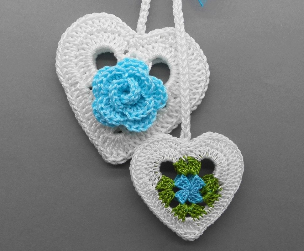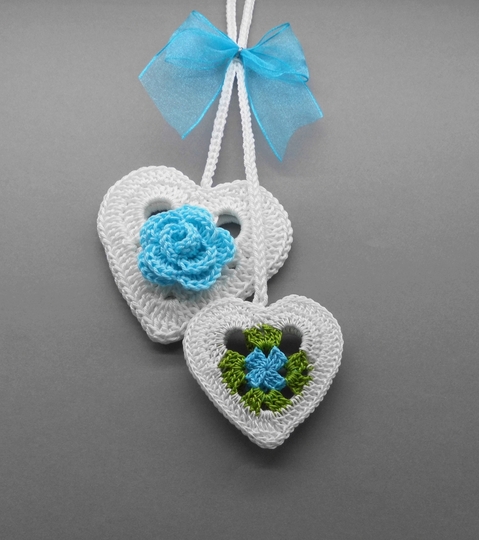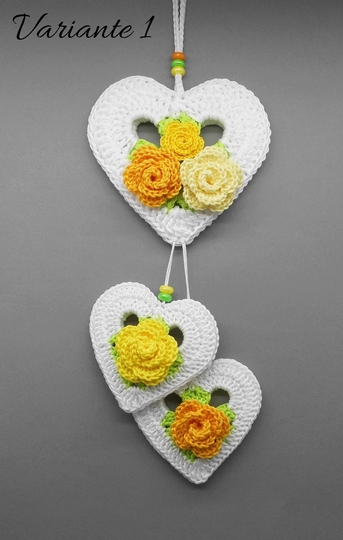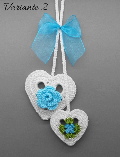 The lovely heart as a decoration in four versions is wonderfully versatile and can be easily crocheted from scraps of yarn even by beginners with a little practice.