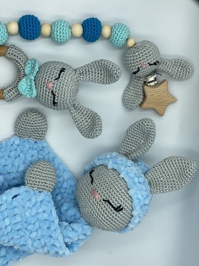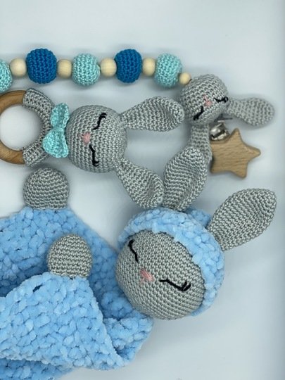With these crochet pattern you can easily design this cute set. Perfectly suited as present :)