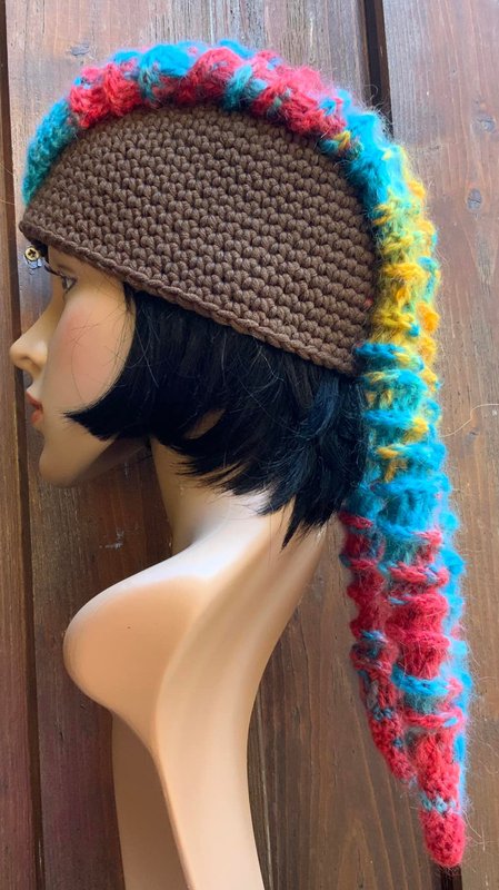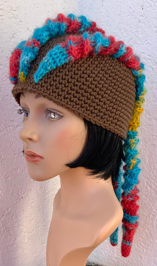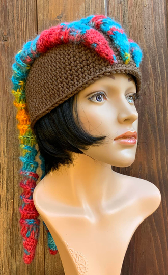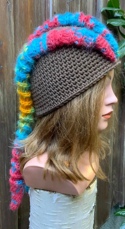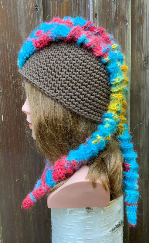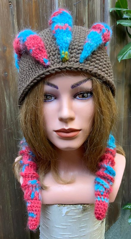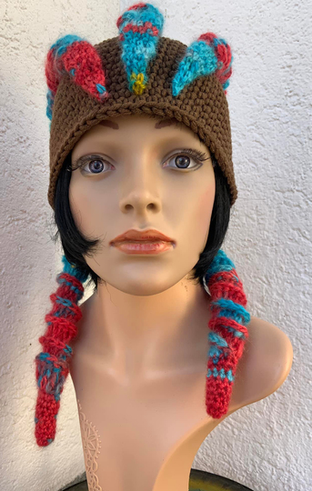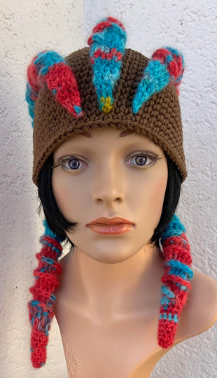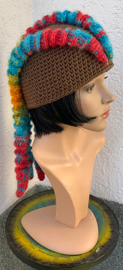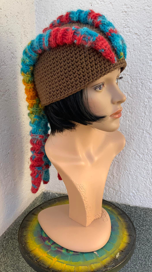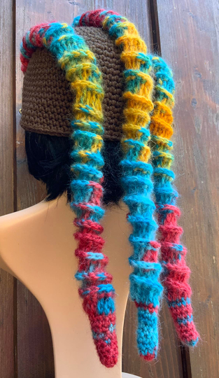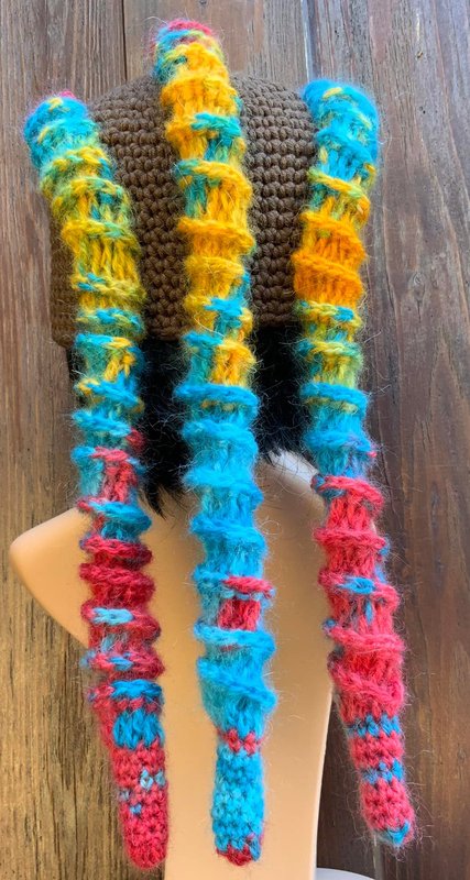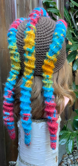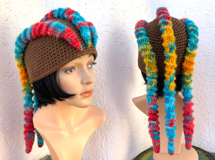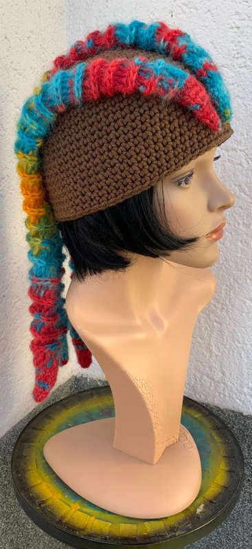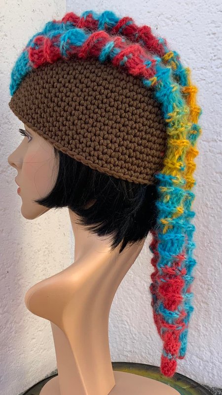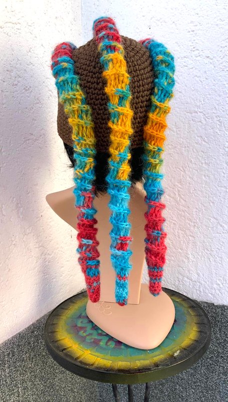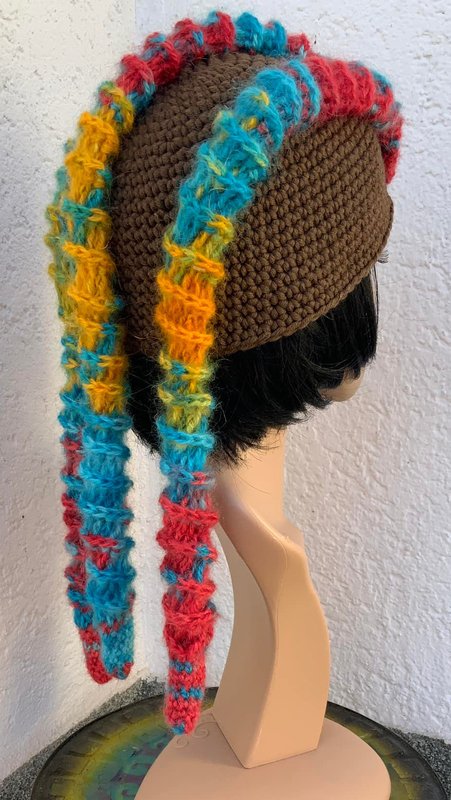 Und die Mütze sieht getragen echt super aus..und sicher auch mit einer Wolle, die der eigenen Haarfarbe ähnelt , ganz was Besonderes !...3 große Rastazöpfe.....!