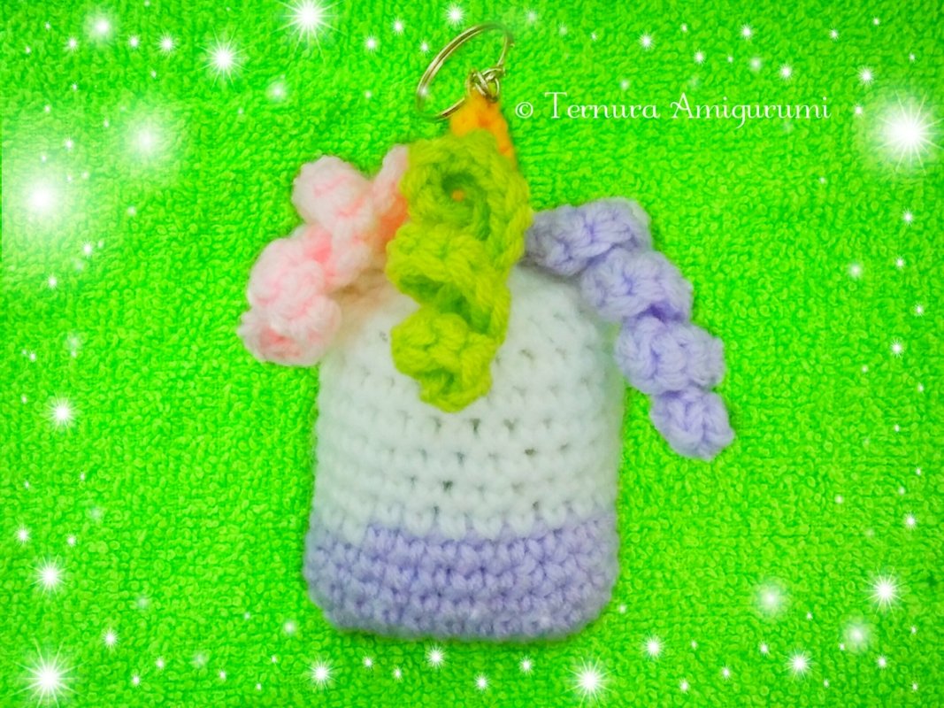 unicorn keychain: Your finished measurements are approximately 10cm x 6cm. The size can vary depending on the size of the needle and the wool.