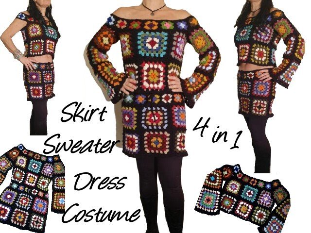 With these instructions you can crochet your own individual, colorful garment. Whether it's just a top without sleeves, a sweater in a short or long version, a short or long skirt, a whole costume or a dress, with or without sleeves - everything according to your taste - is entirely up to you.