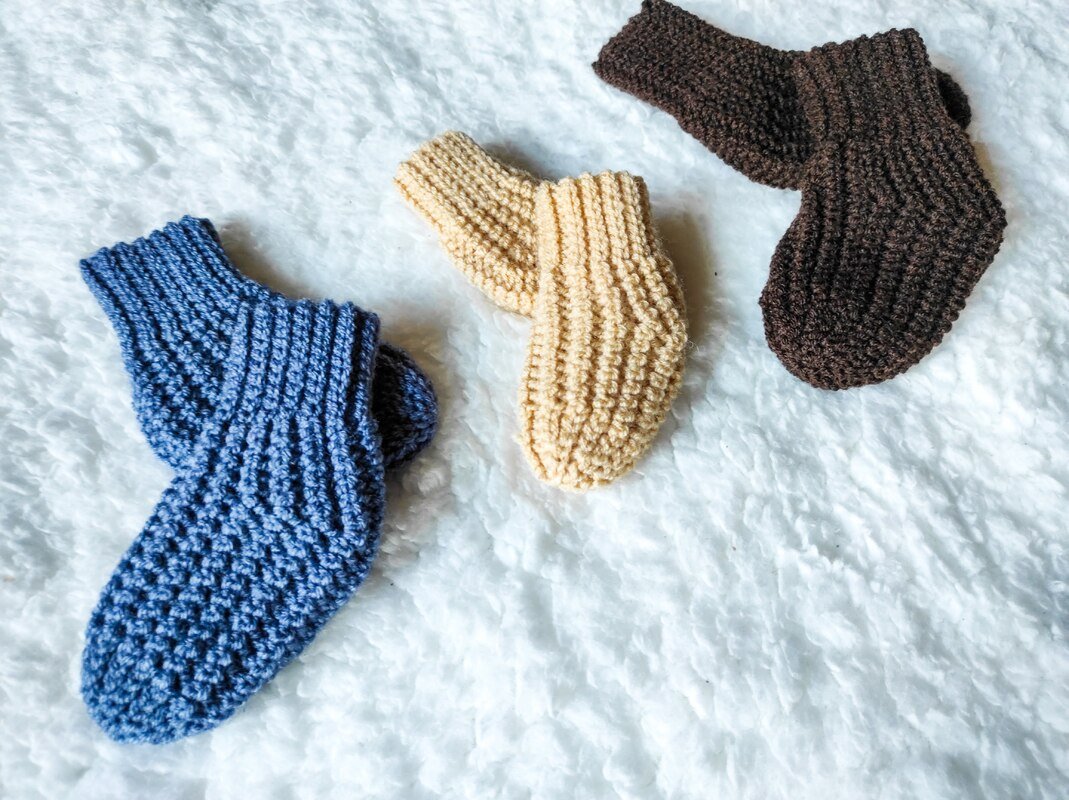 Socks for babies are crocheted with an elastic pattern. Crochet for the first time should be carefully. It will become easy when you understand how it works.