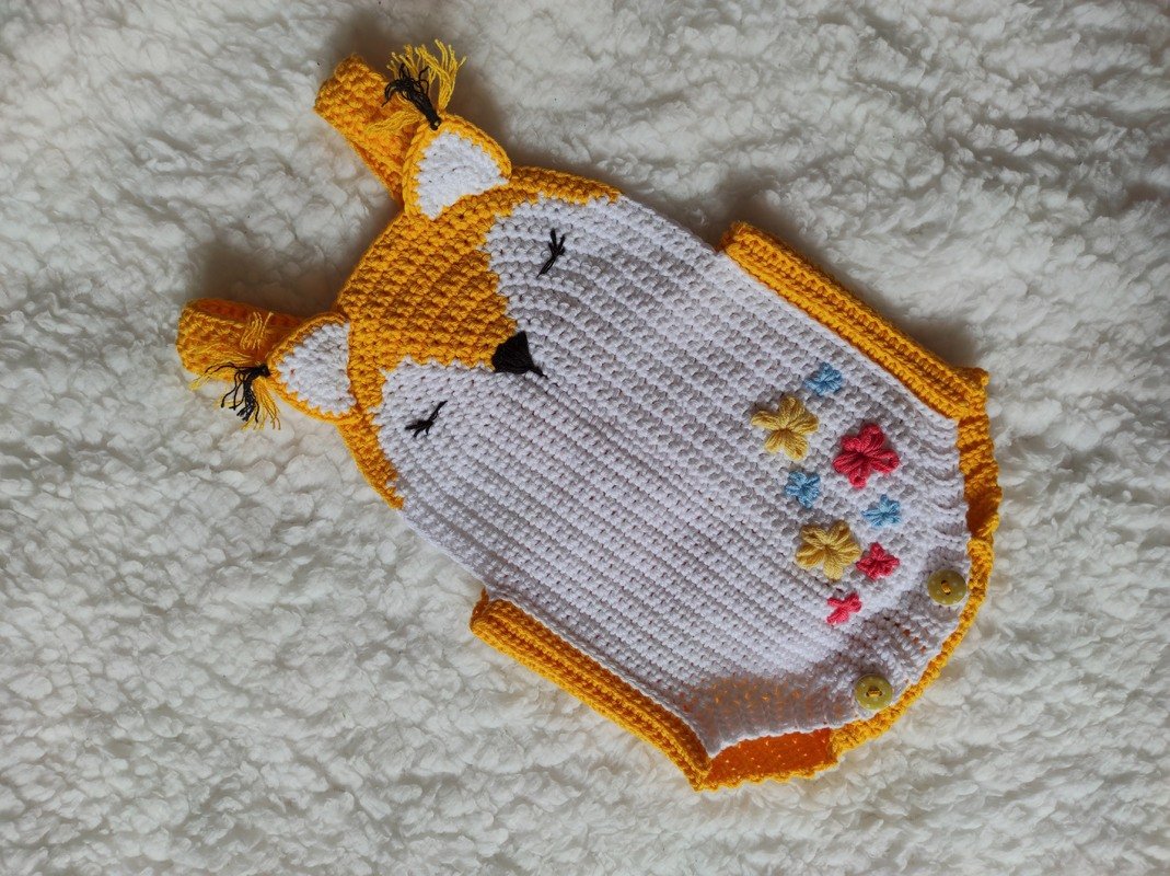 Crochet Pattern Baby Romper Fox or Squirrel, sizes Newborn to 12 months