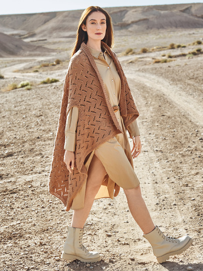 Das geht ganz einfach: Die quer gestrickte Weste ist nichts anderes als ein Rechteck, in das wir die Armausschnitte gleich eingearbeitet haben. So entstehen keine Nähte und das Teil ist im Nu fertig. Das Strickabenteuer beginnt ganz simpel mit einem Rippenbündchen, gefolgt von dem unkomplizierten Lochmuster, wobei an den Rändern die Rippen noch weitergeführt werden. Jetzt geht es gerade hoch bis zu den Armausschnitten. Der Clou: Für die Armausschnitte wird auch das Bündchen direkt mitgestrickt! Die Anleitung erklärt ganz detailliert, wie genau das geht. Nach den Armausschnitten geht es wieder komplett weiter im Ajourmuster, umrahmt von Rippen und endet wieder so, wie es begonnen hat – mit dem Rippenbündchen.
