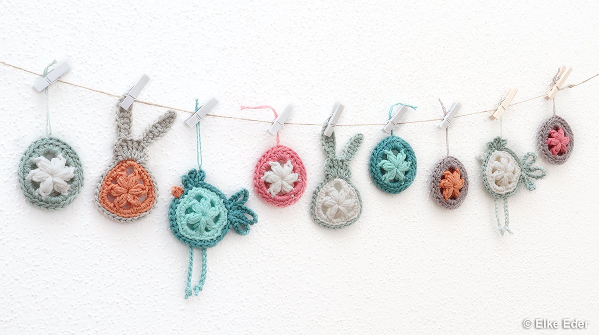 The Granny Easter egg goes wonderfully with the Granny Bunnies and the Granny Hens :-) The egg consists of 2 grannies, which are crocheted in no time in only 2 rounds. With the 3rd round, these two grannies are then joined together.