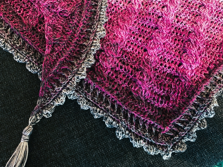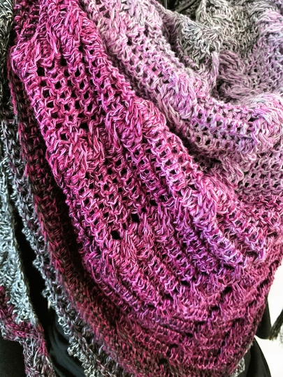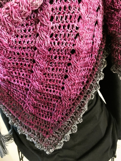 If you like cuddly shawls, with a beautiful edge as eye-catcher, front post/back post stitches and a pattern that you can quickly remember (and which is therefore suitable for crocheting while watching TV), then this is the right pattern for you!