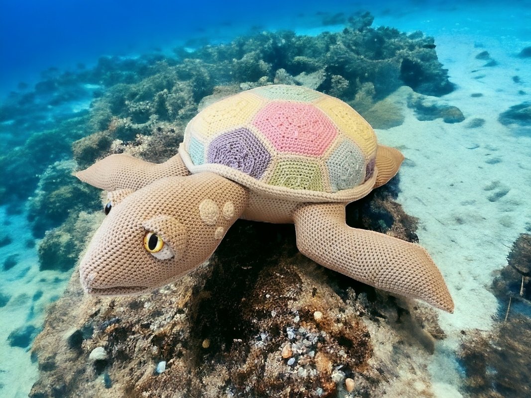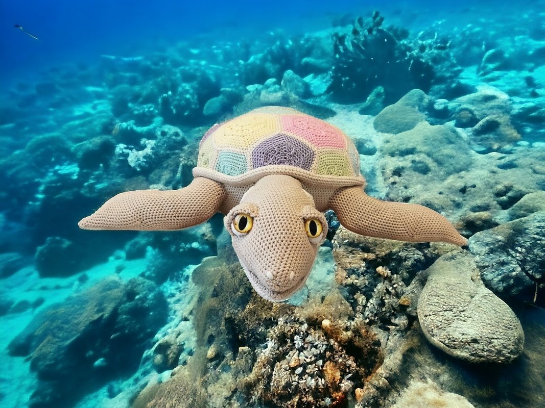 The finished turtle will be about 60cm long. Of course, the size can vary depending on whether you crochet tight or loose. The choice of wool is also important. I used 4ply cotton yarn 125m/50g (100% cotton).