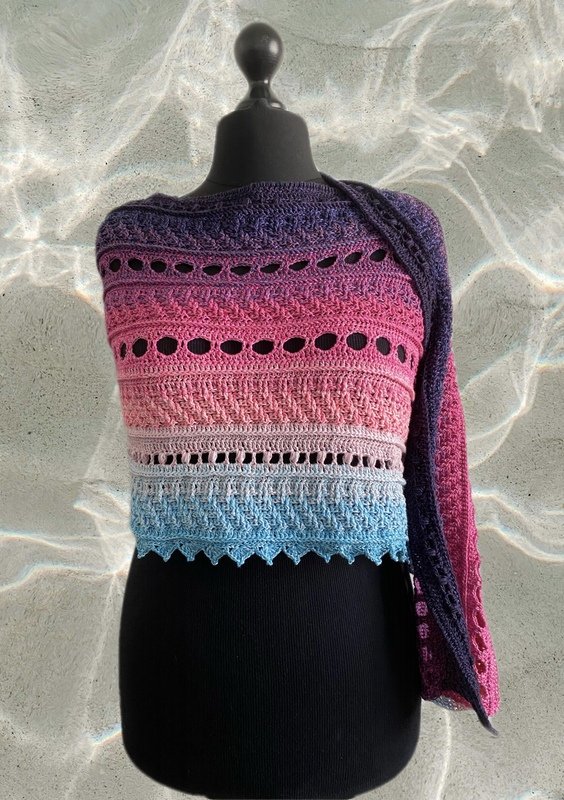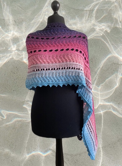 The stole is crocheted in back and forth rows. It consists of 3 different patterns that can be crocheted alternately as desired.