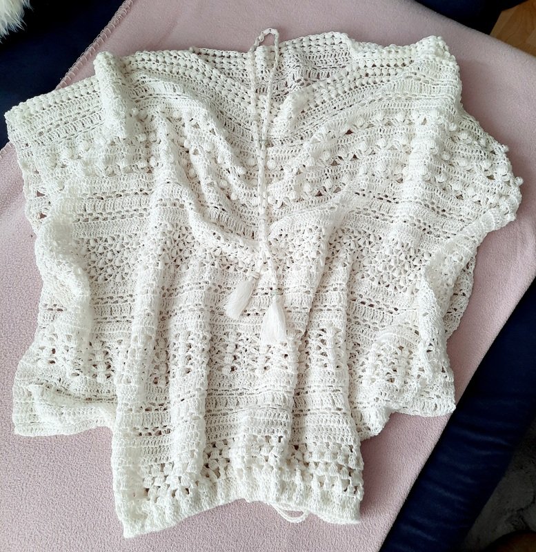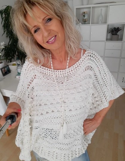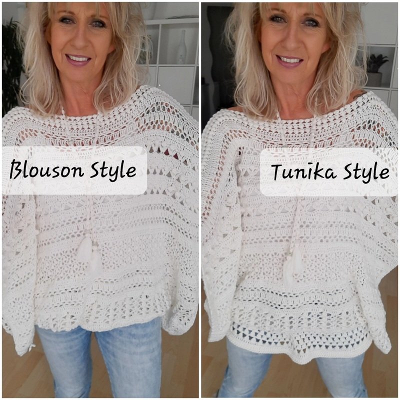 Die Boho Tunika wird in zwei Teilen gehäkelt, ist weit und luftig und bedarf keiner besonderen Passform.