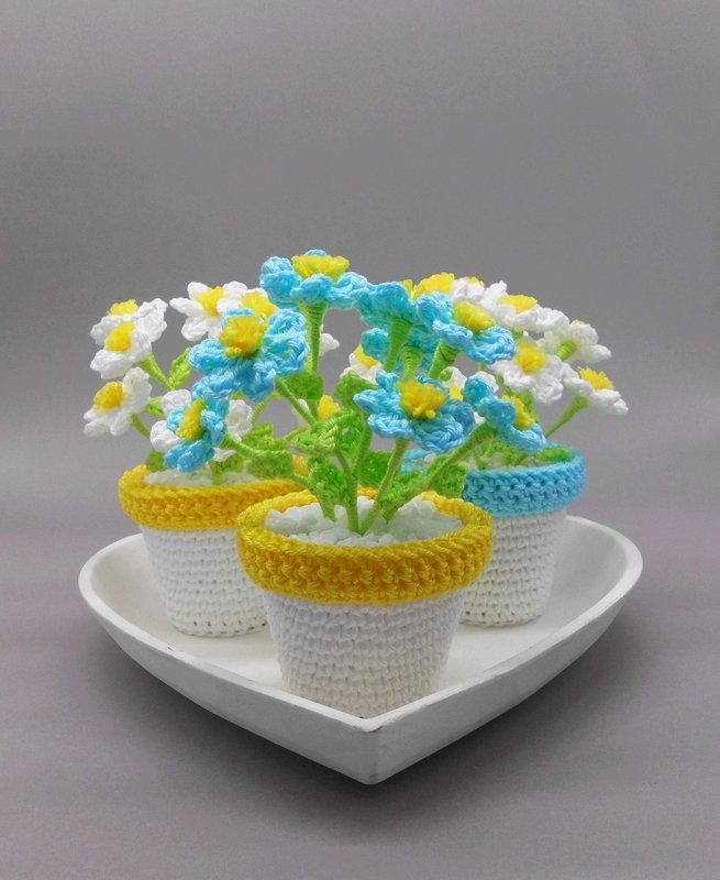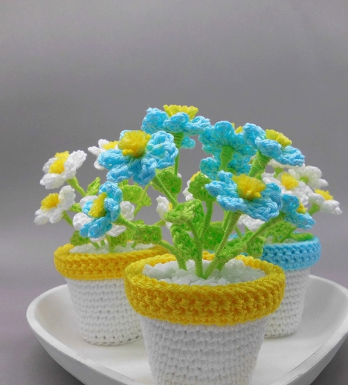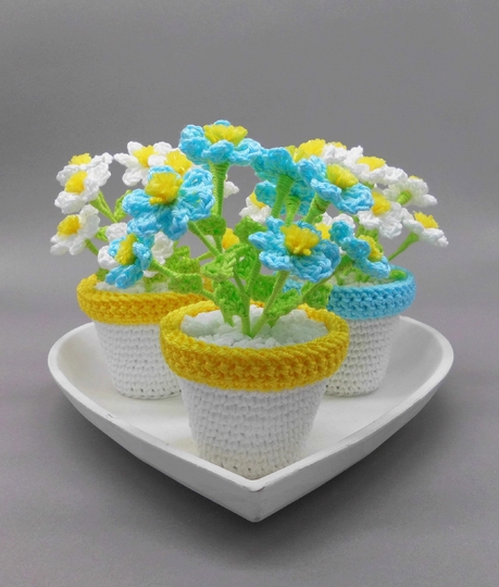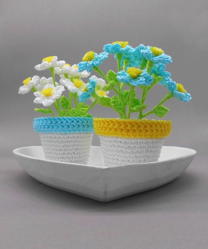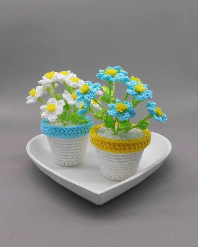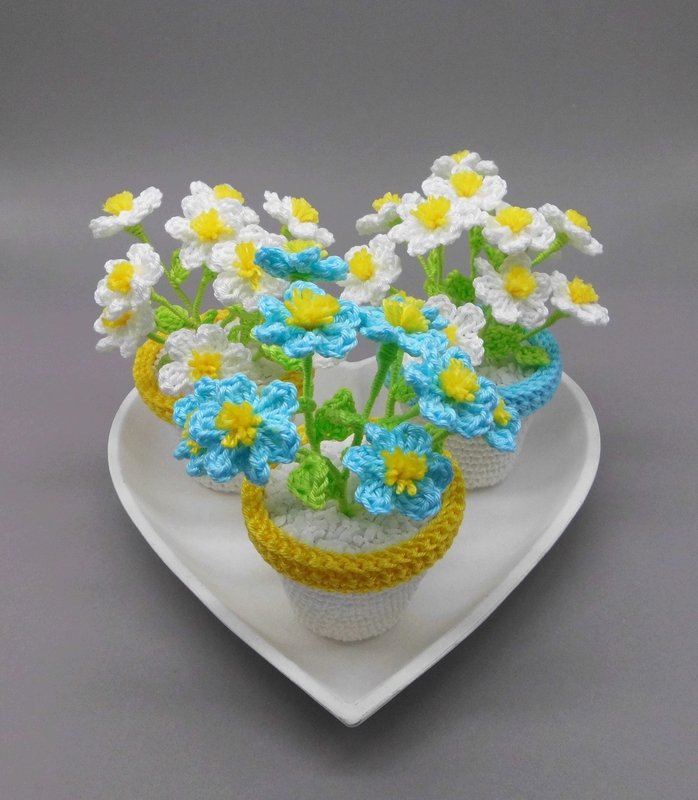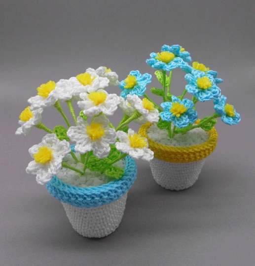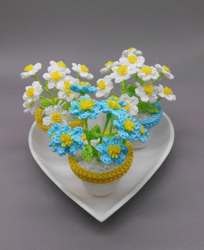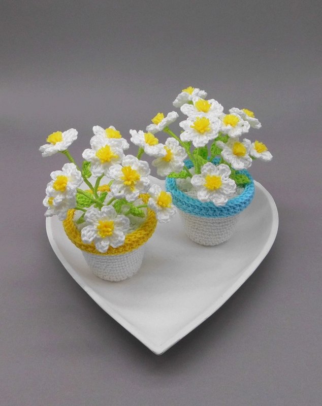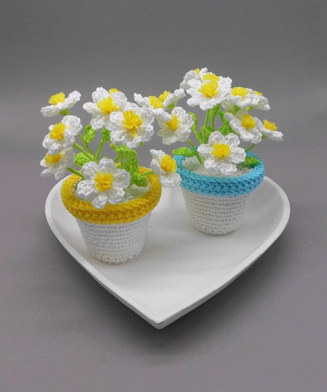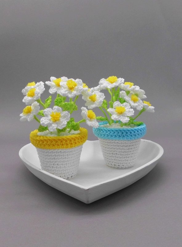 These little flowers can be crocheted, even by beginners with a little practice, very easily and quickly from scraps of yarn in your desired colors - and they remain permanently beautiful, even without a green thumb.
