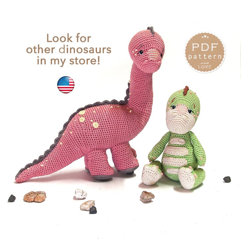 Cute Amigurumi Dinosaur Diplodocus Coca - Easy crochet pattern download PDF. It's a perfect gift for crocheter!