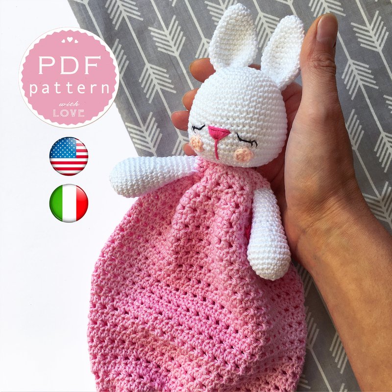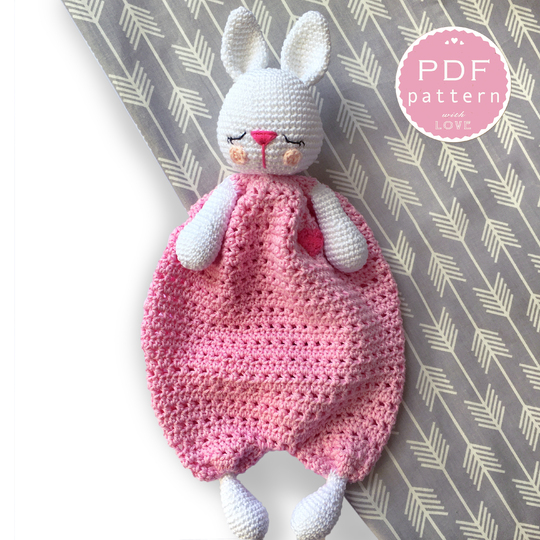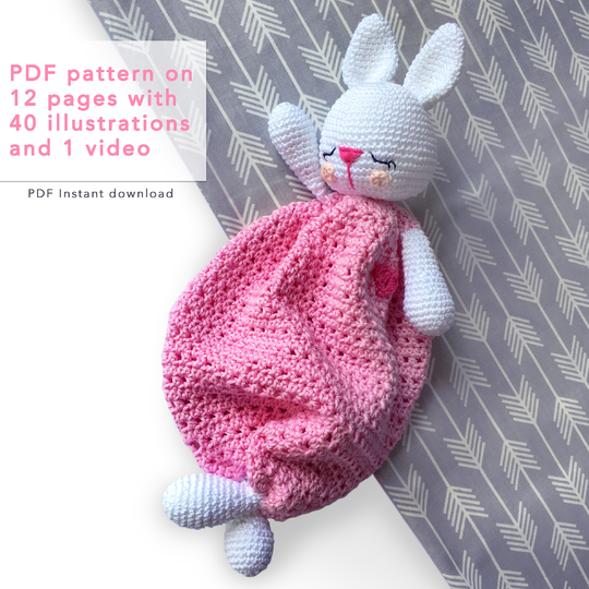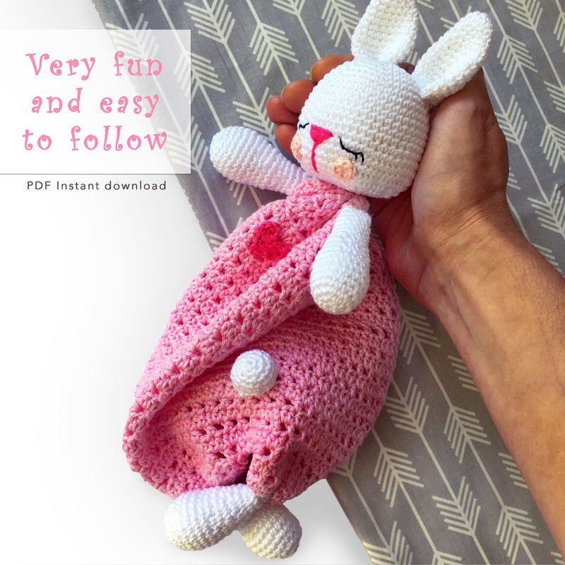 Doudou toy Lovey Amigurumi Comforter Sleepy Bunny - Easy crochet pattern download PDF