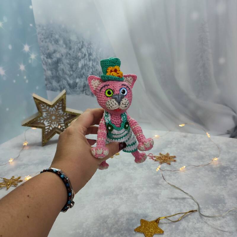 With recommended materials, the toy is 17 cm long and 30 cm high pendant with a cat.
