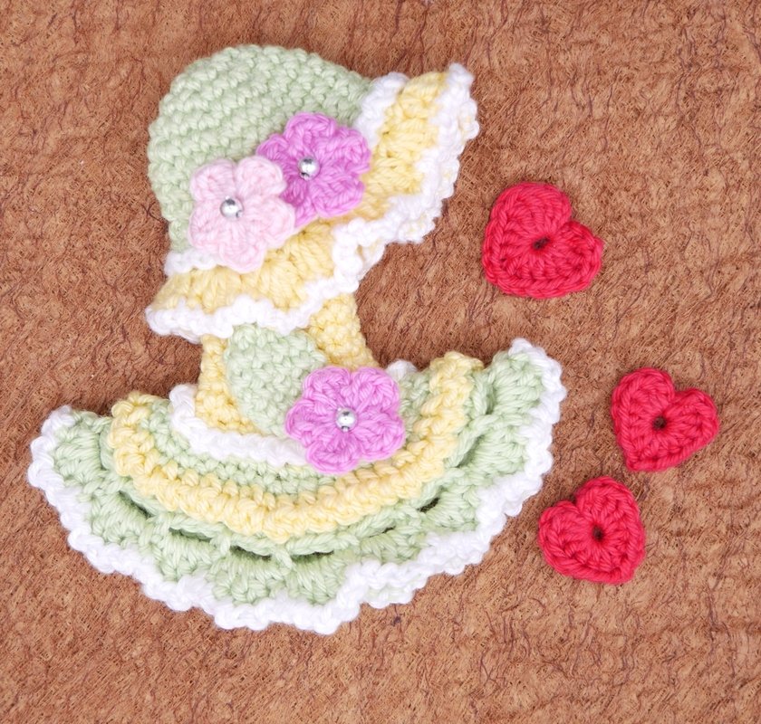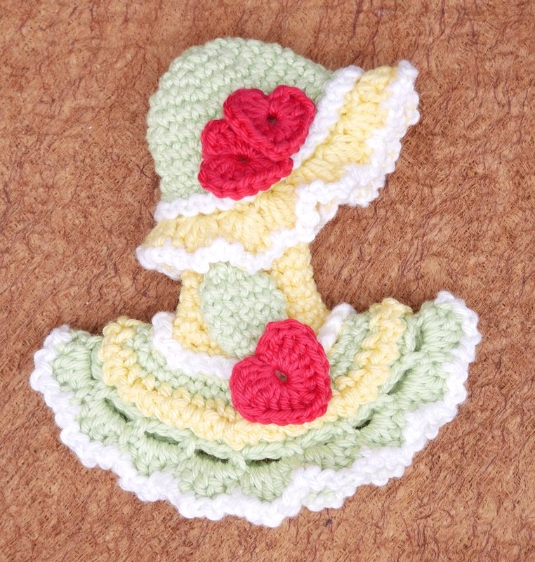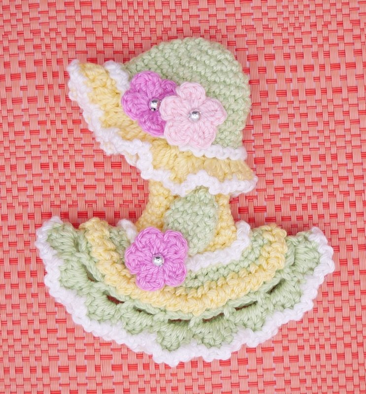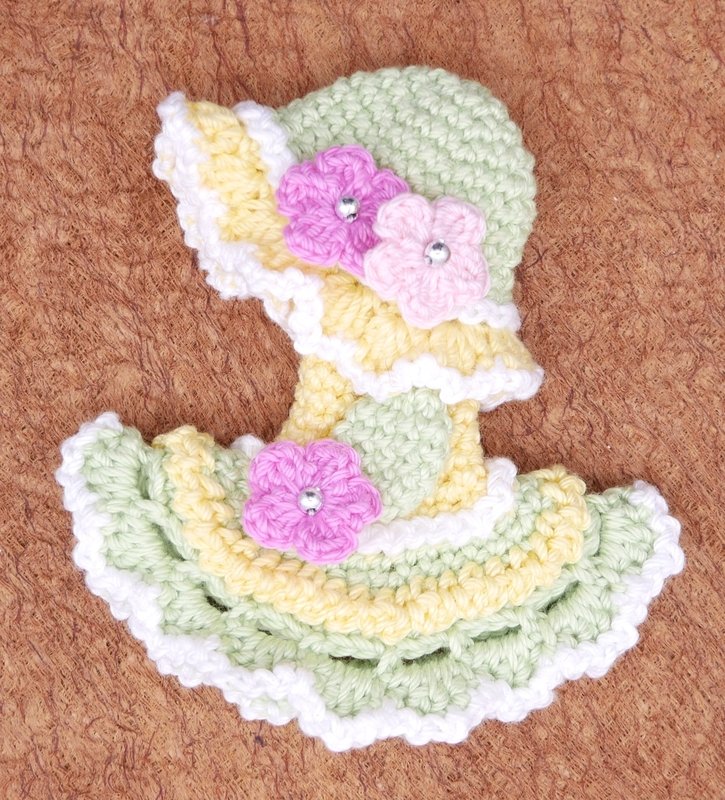 Püppi liegt flach auf , etwa wie eine Applikation ist aber in Runden gearbeitet und wird nicht gefüllt.