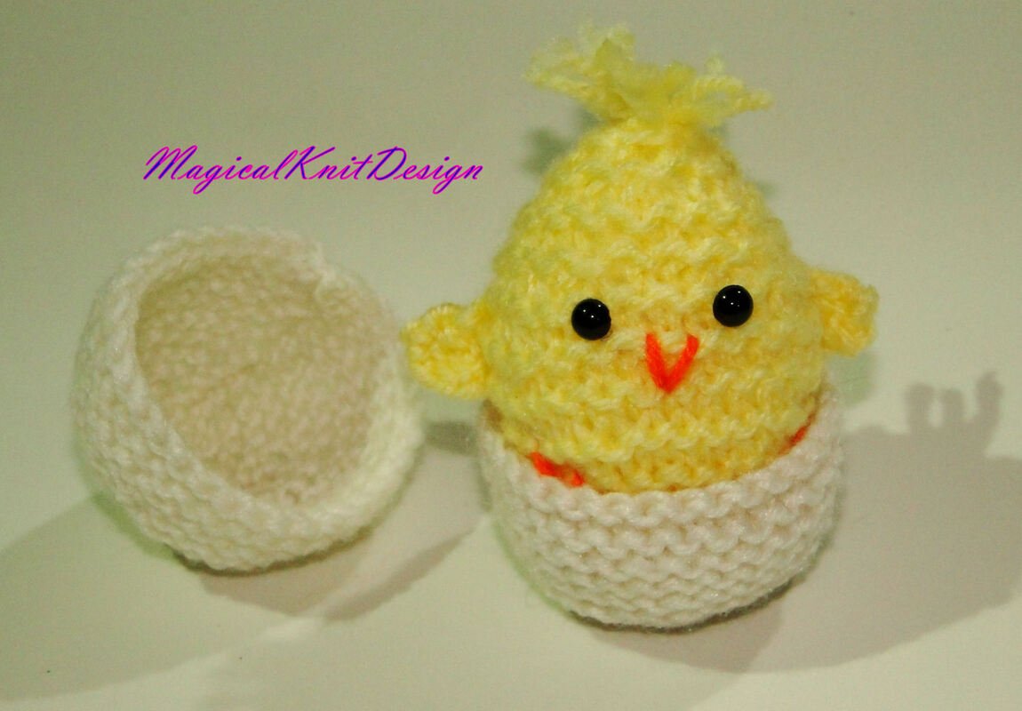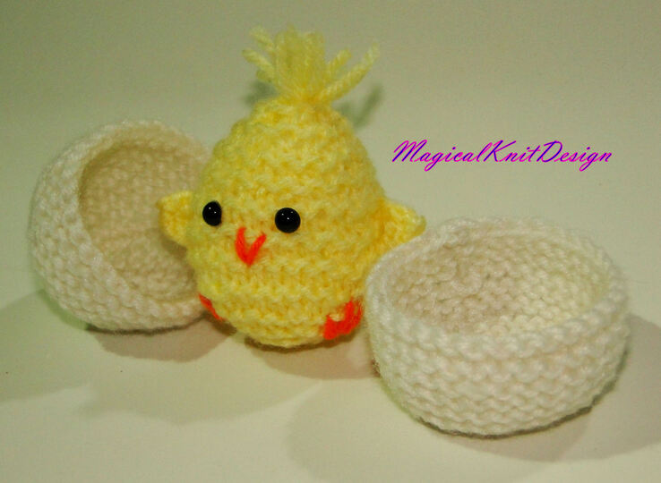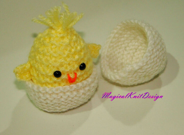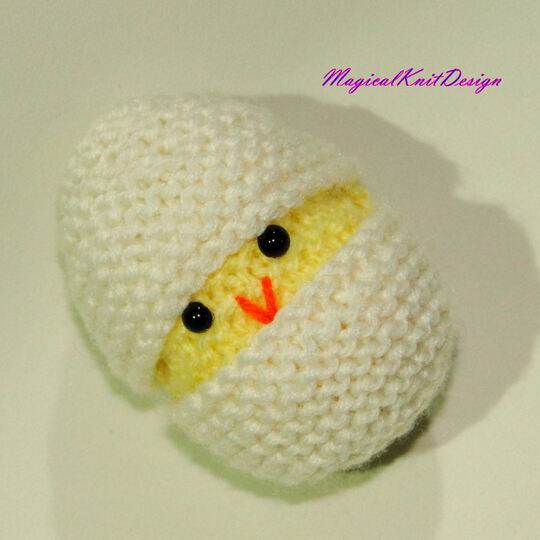 This is Kiki and his eggshell, knitted flat with straight Knitting needles, easy to follow pattern, with row by row written instructions and photo-tutorial.
