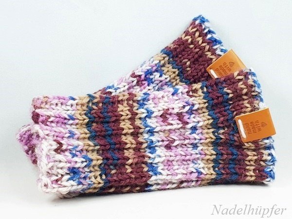 Die Anleitung Stiefestuipn enthält Angaben für Stulpen aus 2 verschiedenen Garnstärken und 3 verschiedenen Mustern. Mit der Vorlage kann aber auch jedes andere beliebige Muster gestrickt werden.