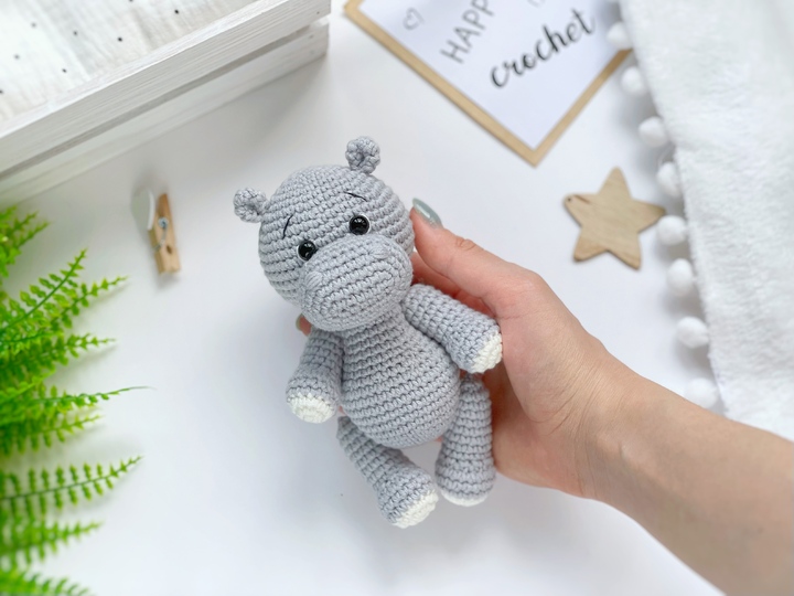 The crochet pattern is in PDF format consists of 12 pages of the detailed, step-by-step description how to crochet cute hippo.
