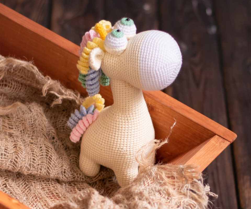 A toy can be made of different types of yarn, but it is important to choose the appropriate ratio of thickness of yarn and hook size.