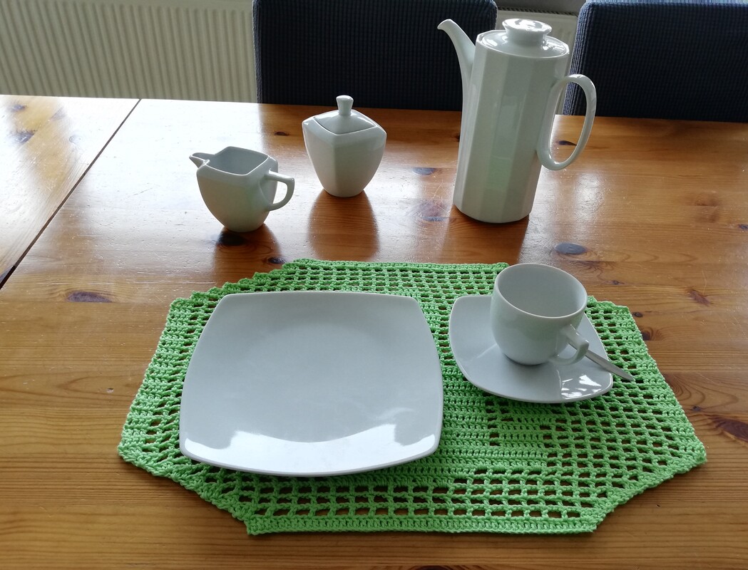 Das Deckchen mit dem Katzenmotiv eignet sich sowohl als Dekoration für das Sideboard oder einen kleinen Tisch, als auch als Platzdeckchen auf dem Esszimmertisch.