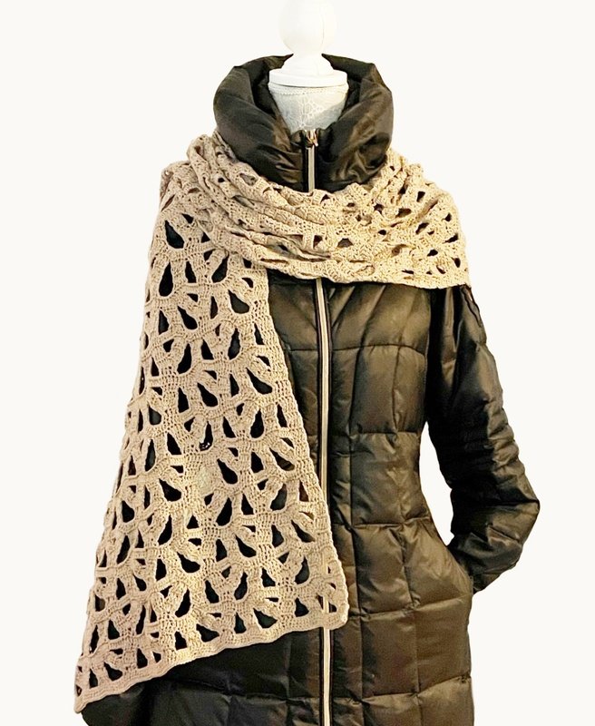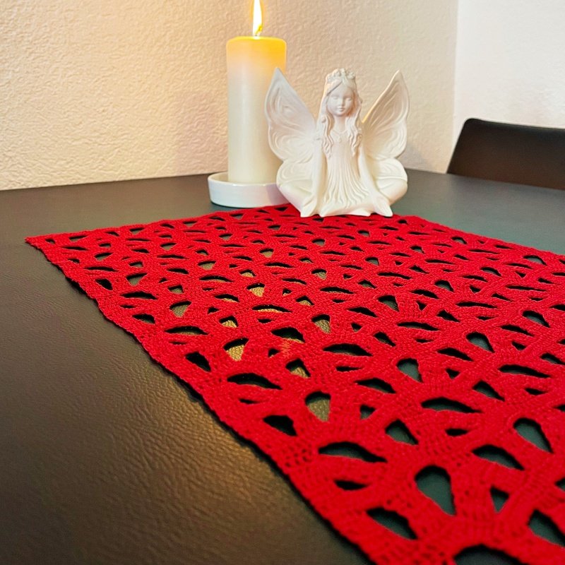 Ferox, an exclusive pattern, can be used as a scarf, table runner, decorative doily, placemat, coaster and many other uses.
