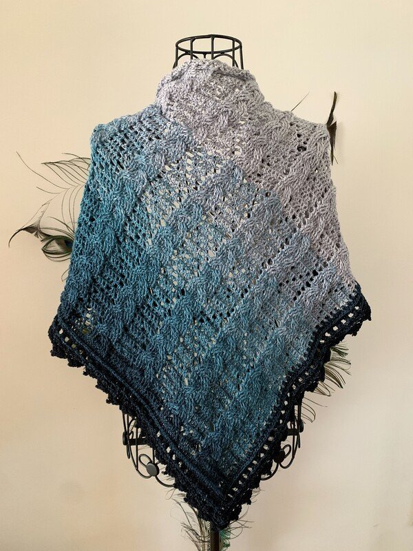 The shawl "Kabye" is crocheted asymmetrically, the size can be changed as desired.