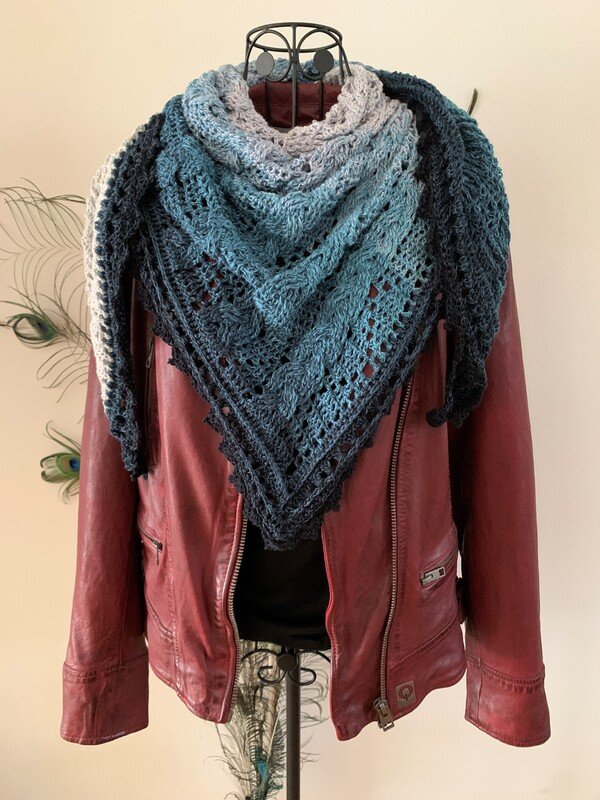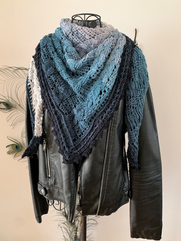 The finished shawl has the following edge lengths: 145 x 82 cm. Depending on the wool and crochet hook used, the size may vary. The shawl can be crocheted as large or small as you like.