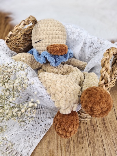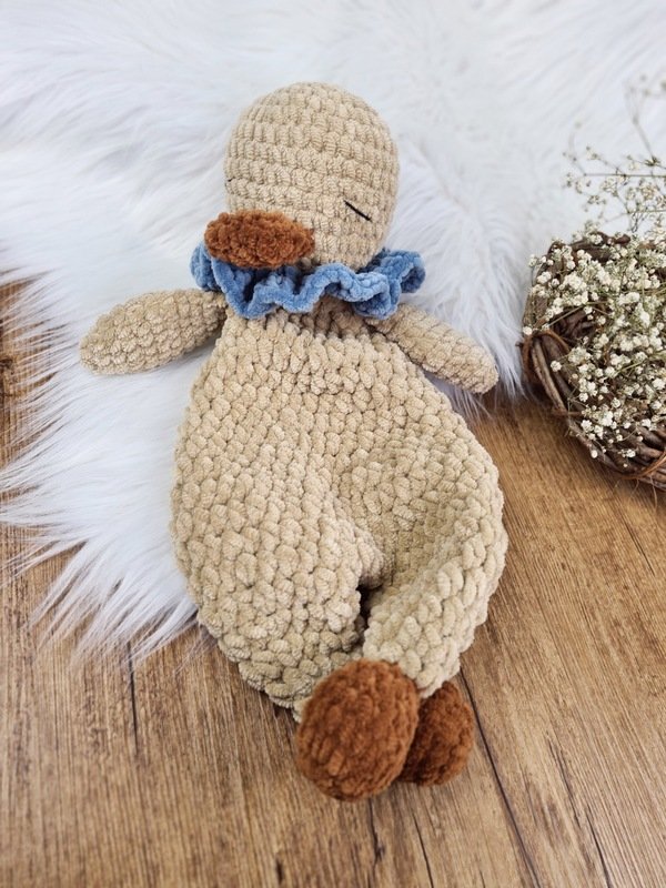 Mit dieser Anleitung kannst du das niedliche Entchen aus kuschelweicher Chenillewolle selbt nachhäkeln. Viele Bilder und eine ausführlich geschriebene Anleitung begleiten dich bis zur Fertigstellung.