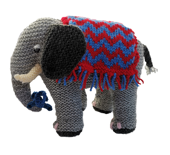 A quick knit elephant with a rug on its back and either water or grass from its trunk. The body is worked in purl and garter stitch, with an easy to follow, Step by Step instructions. An adorable and durable elephant toy that will be forever cherished and your memory will live on