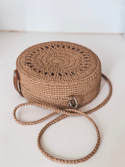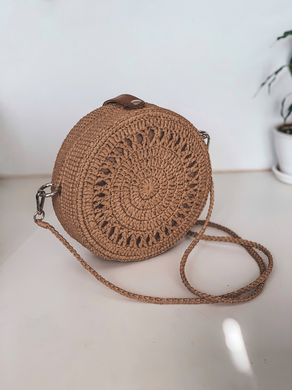 This crochet pattern contains instruction with step-by-step on how to make the round bag with raffia yarn.
