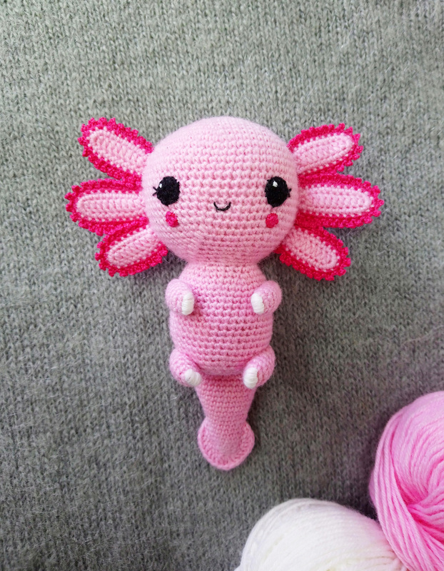 The pаttеrn is written in English (US terms) and contains detailed and easy to follow instructions (19 pages) of how to make the crоchet axolotl. It also contains a lot of step-by-step photos and helpful notes.