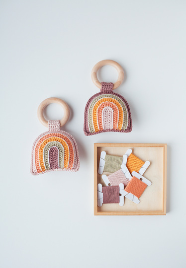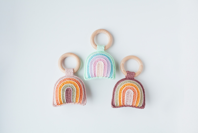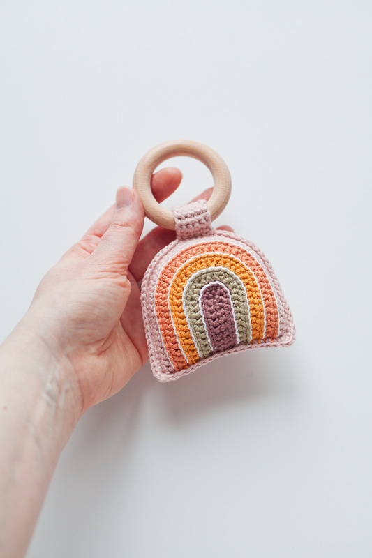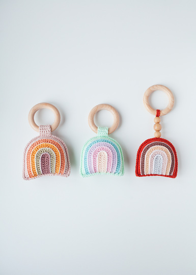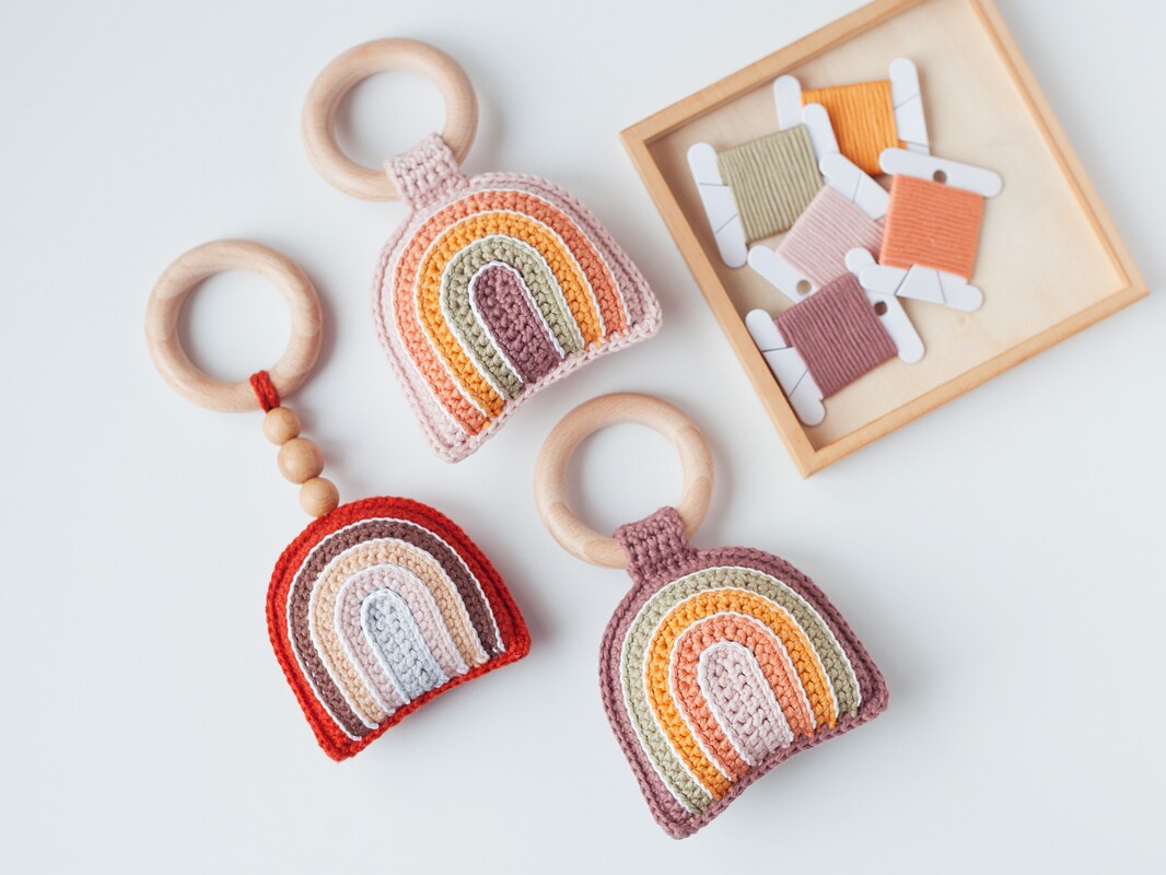 Using this amigurumi rainbow baby rattle crochet pattnern in English, you can crochet a rattle for your baby or grandchildren.