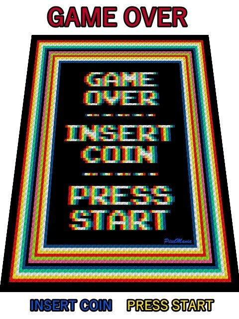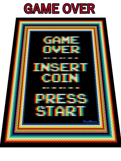 Game over 2 is a digital diagram that can be used for different crochet techniques, such as corner to corner = C2C, mini C2C, single crochet, half double crochet, double crochet, Tunisian crochet, bobble stitch. Alternatively, this product can also be used for cross stitch, knitting, hamma beads, plastic canvas and other projects.