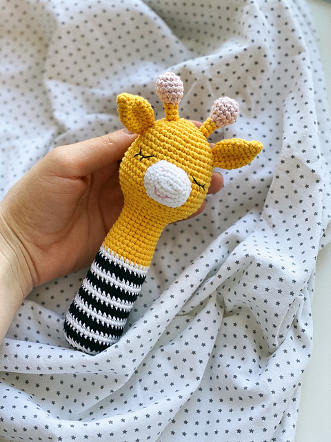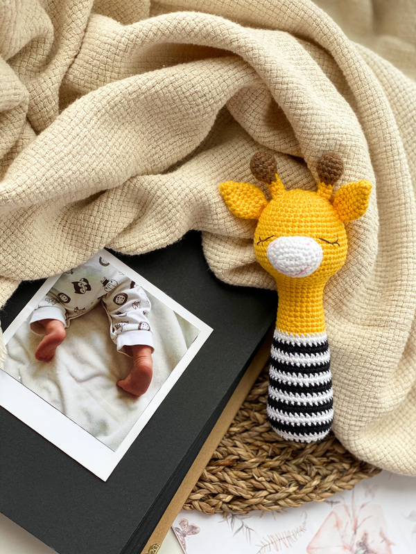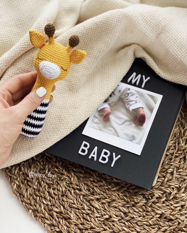 Crochet baby rattle toy Giraffe AMIGURUMI PATTERN (English and German PDF pattern).