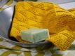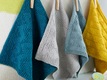 HOBBII: “Rainbow Cotton Deluxe“ or “Rainbow Cotton (8/4)“ (100% organic cotton, yardage 186 yd = 170 m/50 g), 50 g = 1 ball each dishcloth, available in a variety of colors.