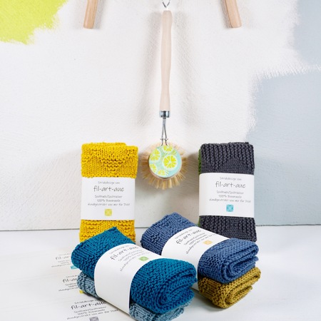 SCANDI cotton dishcloths are quick and easy to knit, washable, durable and simply more fun to wash up and clean with! And by the way, we avoid microplastics! In beautiful color combinations - wrapped in a self-printed banderole (which is included) - these cloths are a beautiful and practical gift for anyone you like! With 5 very simple graphic patterns - which you can mix and match - these dishclothes offer relaxed knitting pleasure!