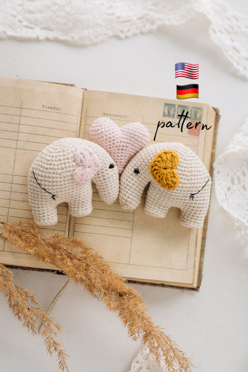 Crochet patterns of stuffed elephants/ Digital download/ crochet animals/ amigurumi pattern of tiny elephant/ Amigurumi pattern/ Elephant