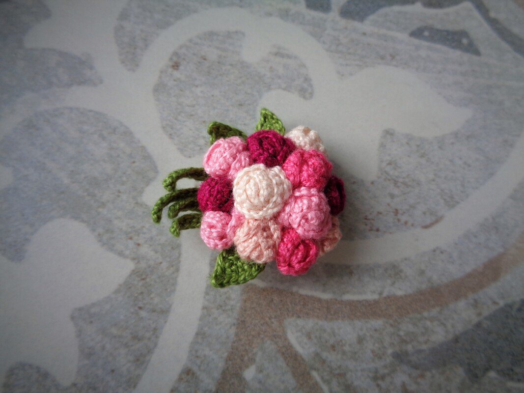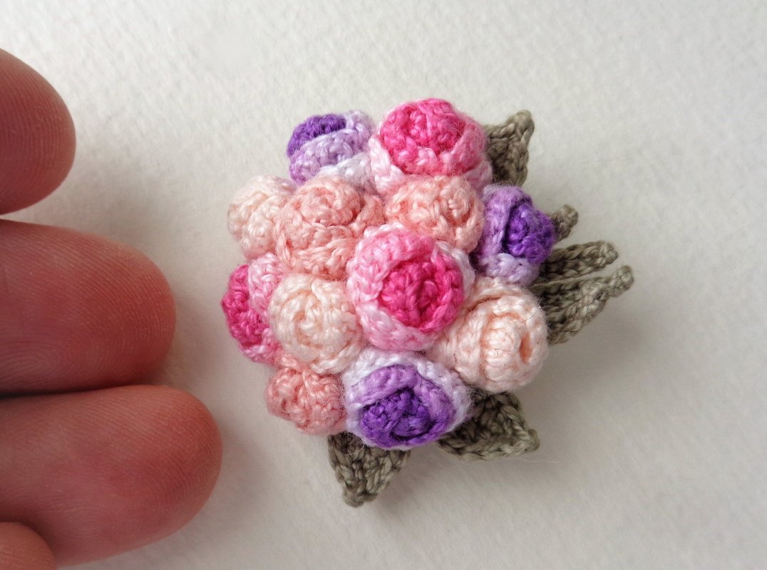 The DIMENSION of finished brоoch is 3,5 cm/ 1,4 inches length. Please remember, that the size of finished item depends on the used material and your crоchet style.