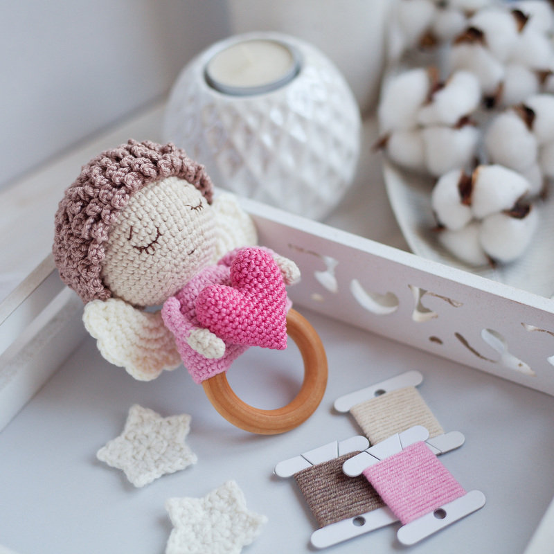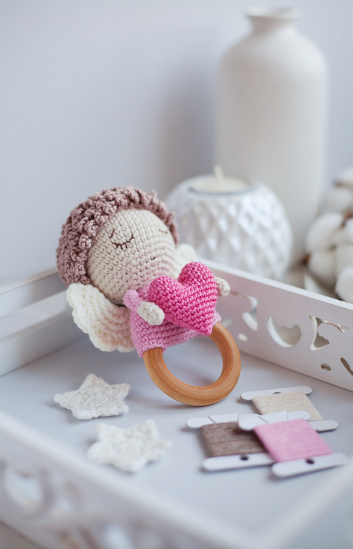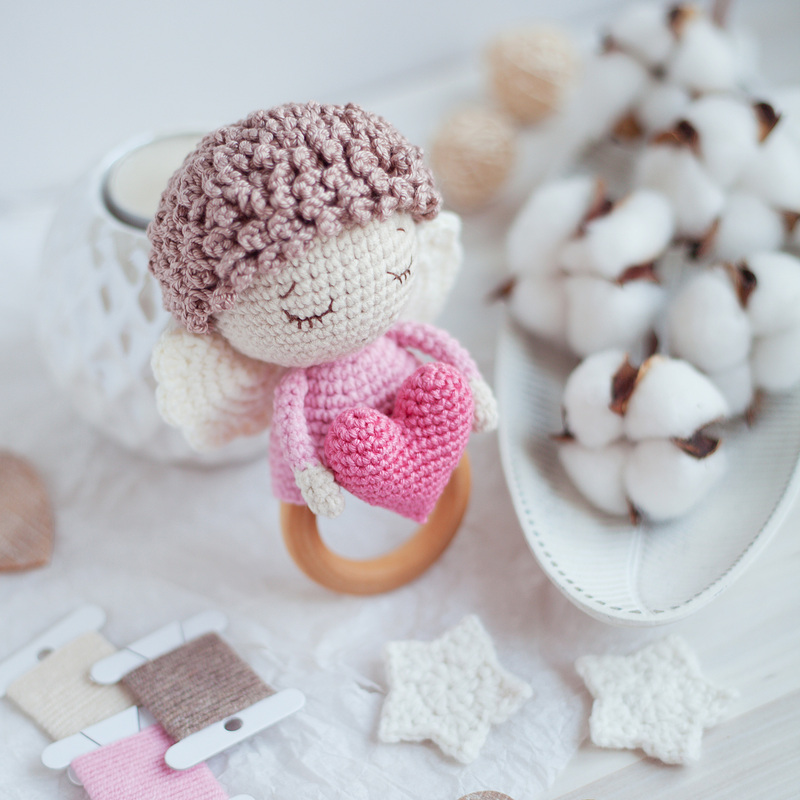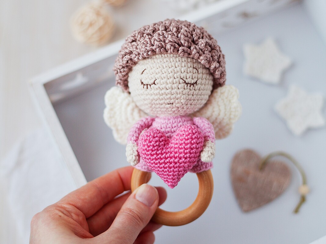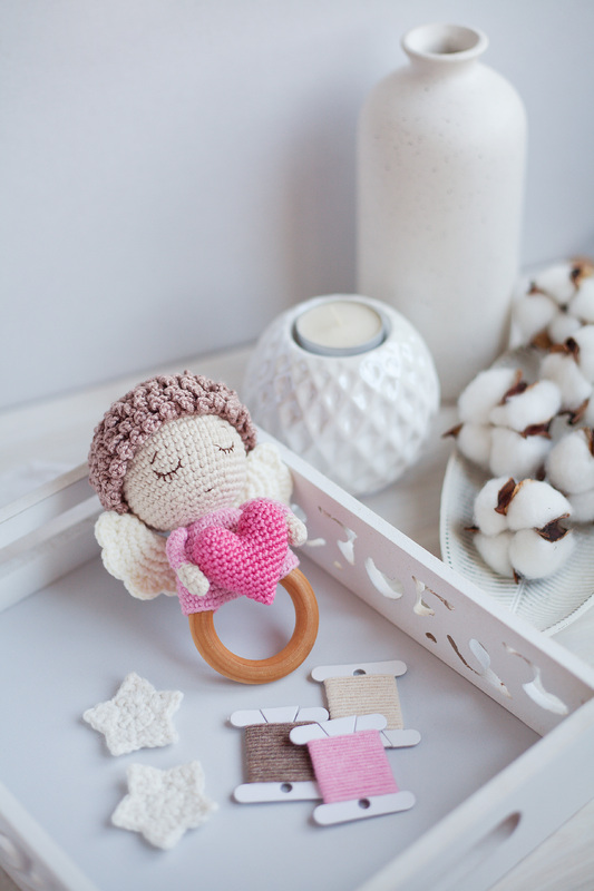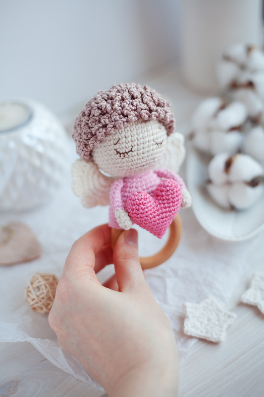 Using this cupid angel with tiny heart rattle crochet pattern in English, you yourself can crochet a rattle for your baby or grandchildren. This toy will be a great gift for Valentine’s Day or Christening.