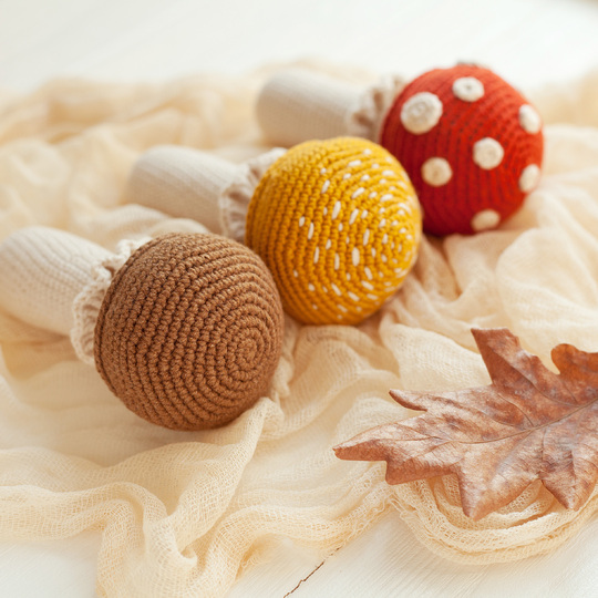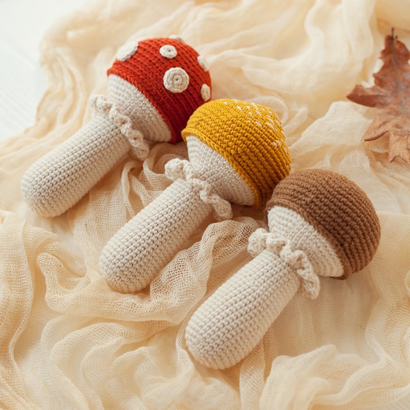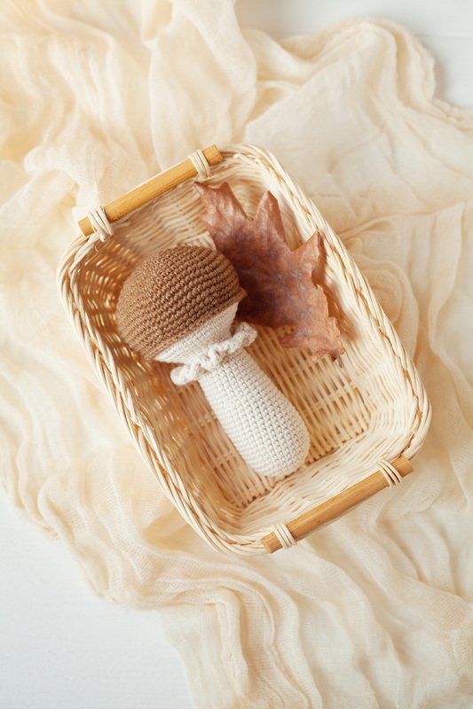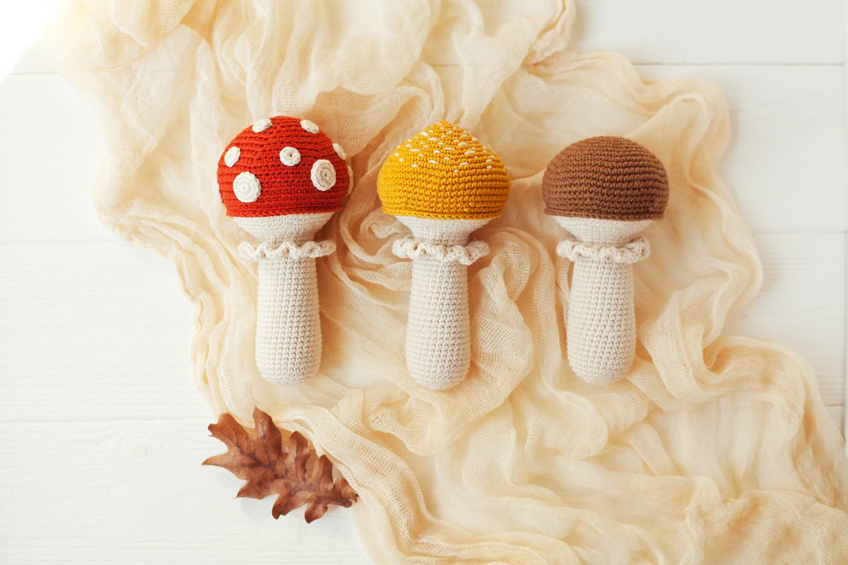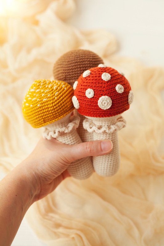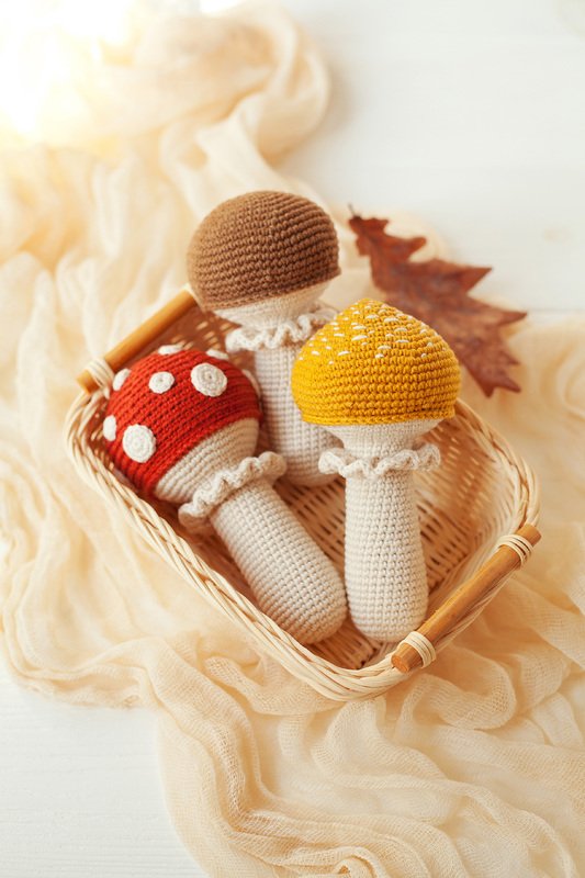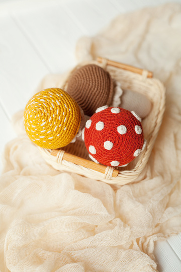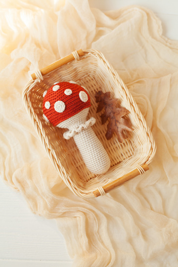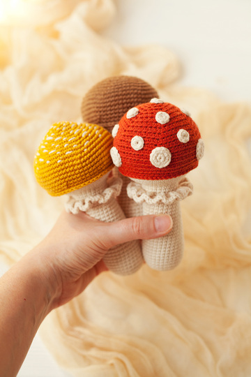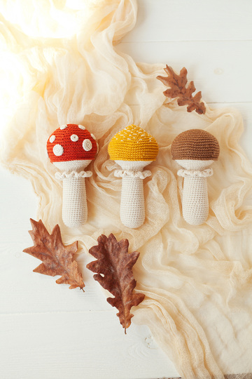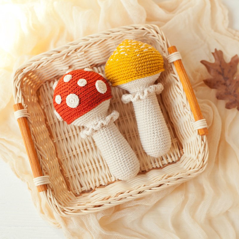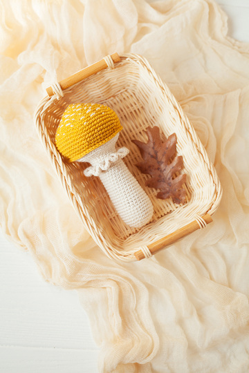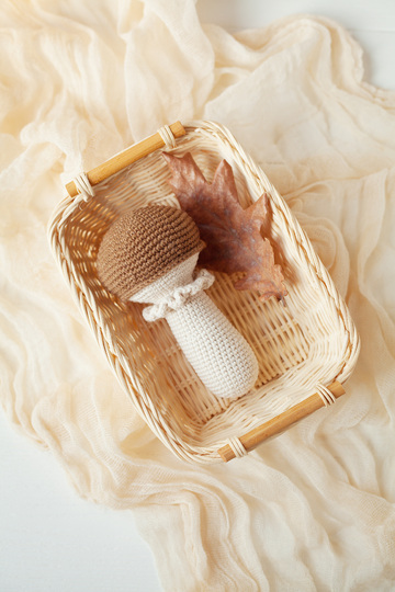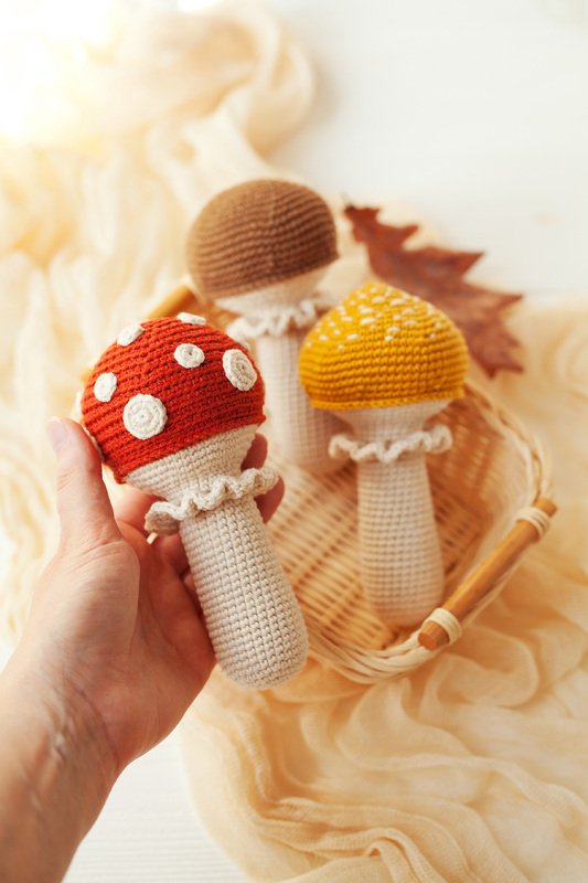 Using this mushroom rattle crochet pattern in English, you can crochet a rattle for your baby or grandchildren.